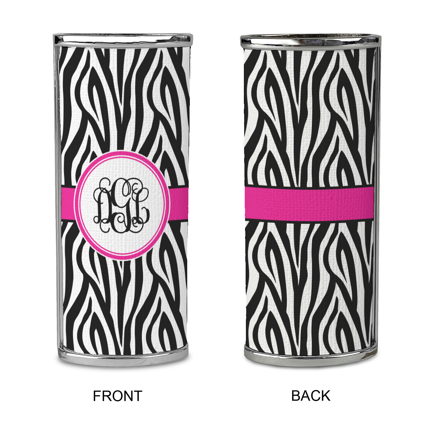 Modernized with a wide hot pink band that is trimmed in black. This band highlights a coordinating label that is perfect for personalization of your choice.