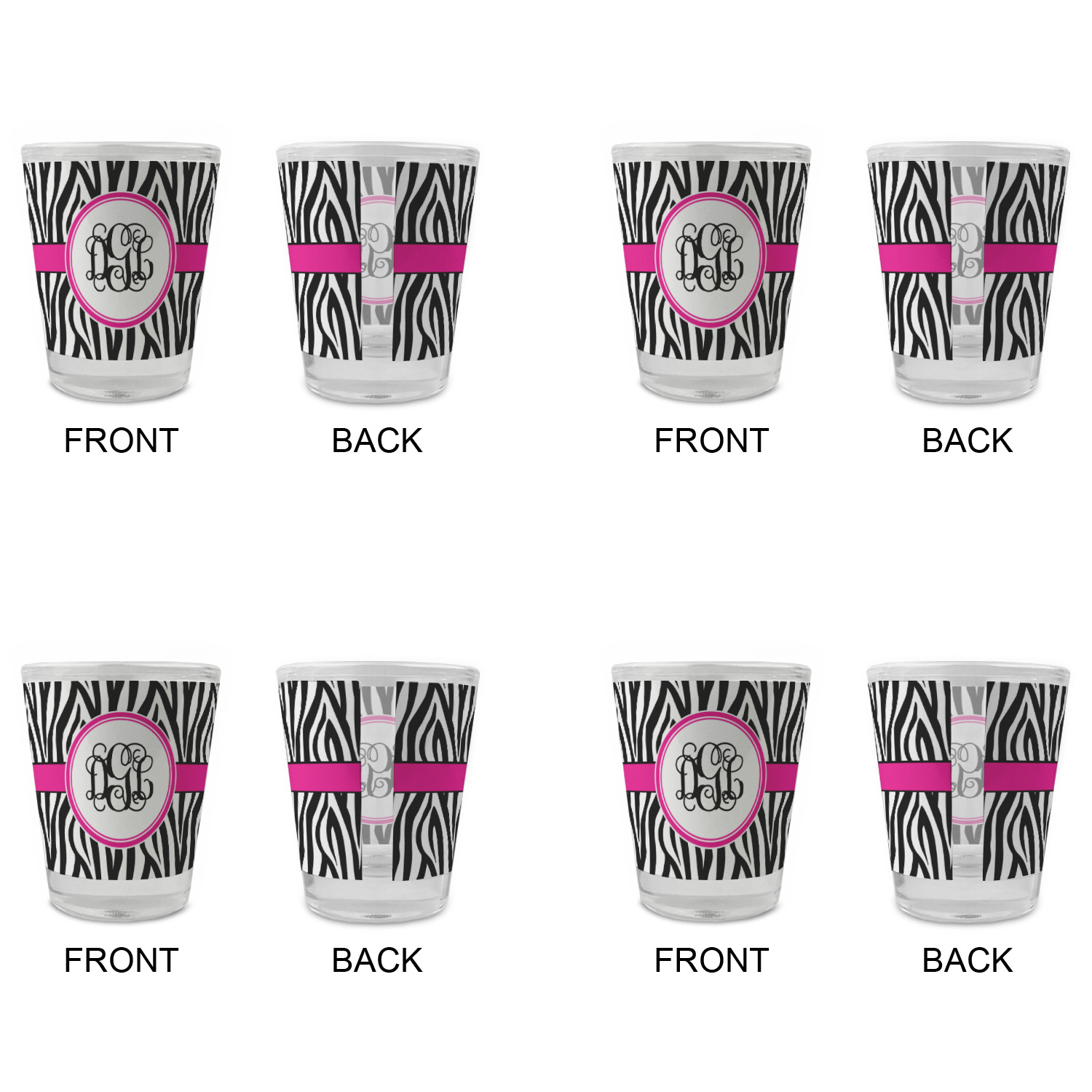 Made with frosted glass, these shot glasses are printed in full color with the design of your choice. They are a standard 1.5oz shot glass and are 2.4" tall. The print is wrapped around the shot glass in a full wrap and boldly displays your customization.