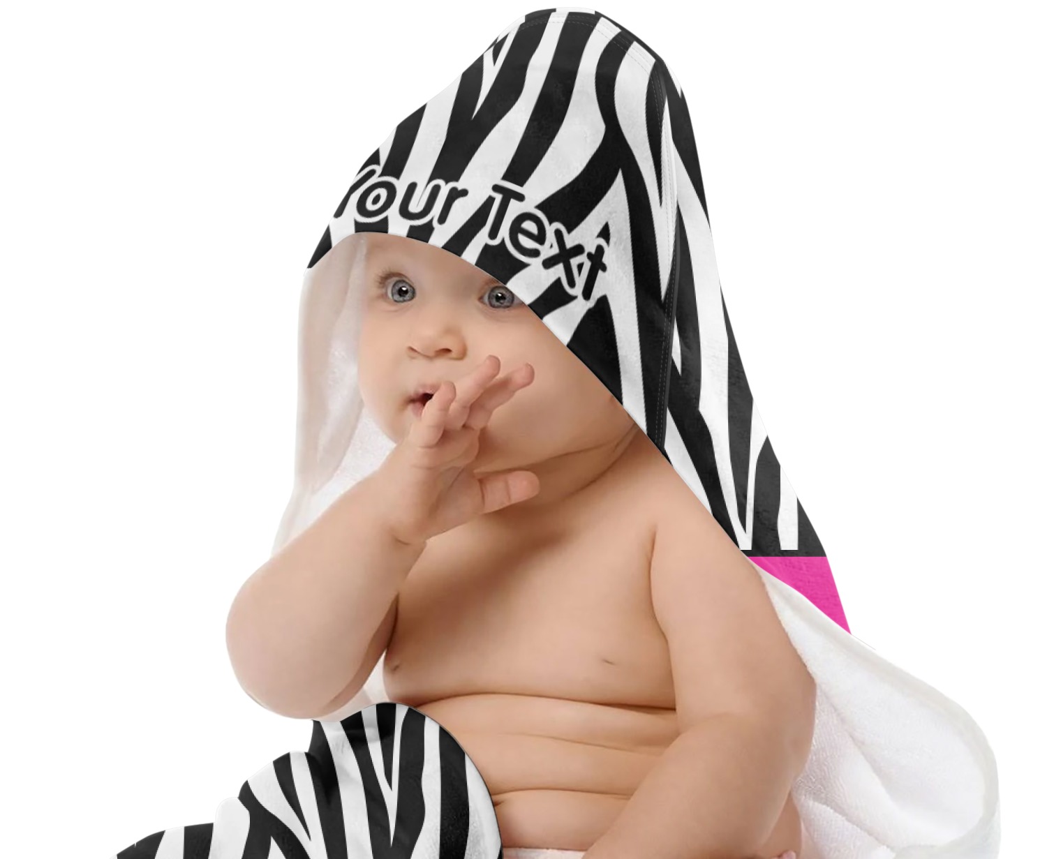 This baby towel is made with a plush microfiber velour and cotton terry. and thus will be soft and gentle against your newborn's skin, but also, very absorbent. Your customization is printed across the front & the hood, while the inside is a classy white.