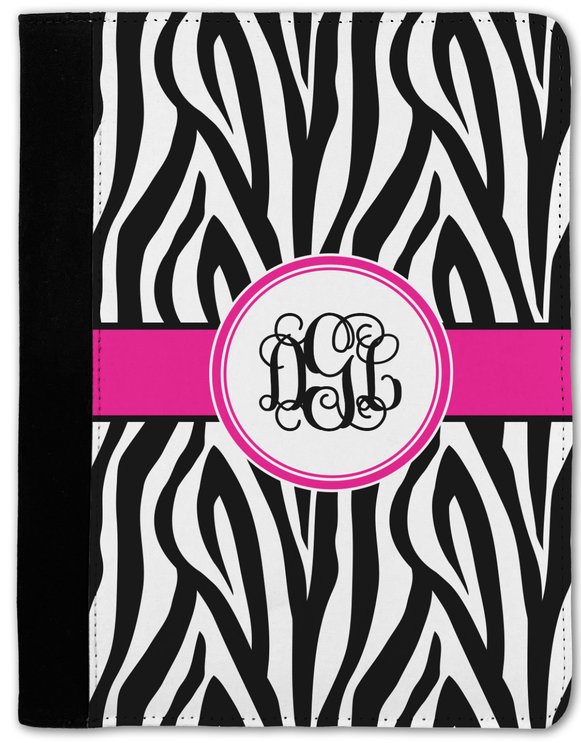 These personalized padfolios are made from a black, polyester microfiber and features a standard, 50-page notepad. However, these black padfolios can accommodate a pad with up to 100 pages. This model also features a slot pocket for any loose sheets of paper, small pockets for business cards, and an elastic band to secure a pen. We print your personalization across the front of this notepad portfolio in bright, vibrant color. These padfolios come in 2 sizes, Medium - approximately 10.25" x 8" for 5" x 8" paper and Large - approximately 12.5" x 8.5" for 8.5" x 11" paper.
