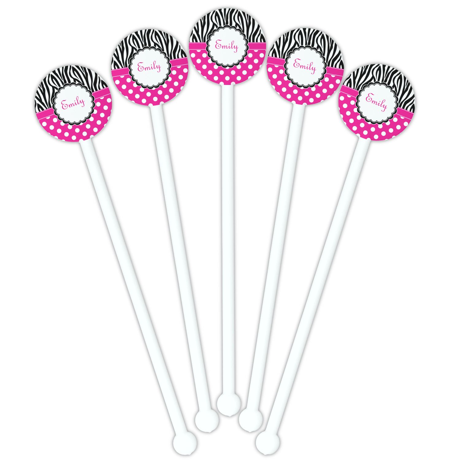 Shape + Symbol Designs for 5.5" Round Plastic Stir Sticks - White - Single-Sided