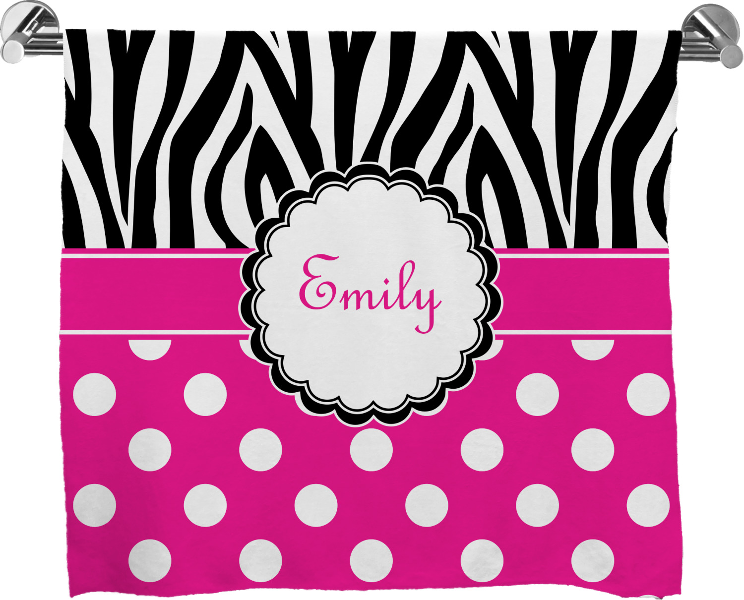 Here is a wonderful zebra print with a fun, modern twist. The top of this design features a black and white traditional zebra print. To add color and flair we have paired the zebra pattern with a fun hot pink and white polka dot pattern on bottom.
