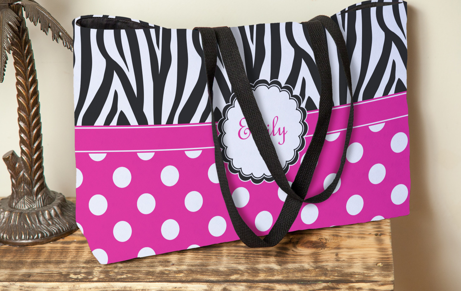 Here is a wonderful zebra print with a fun, modern twist. The top of this design features a black and white traditional zebra print. To add color and flair we have paired the zebra pattern with a fun hot pink and white polka dot pattern on bottom.