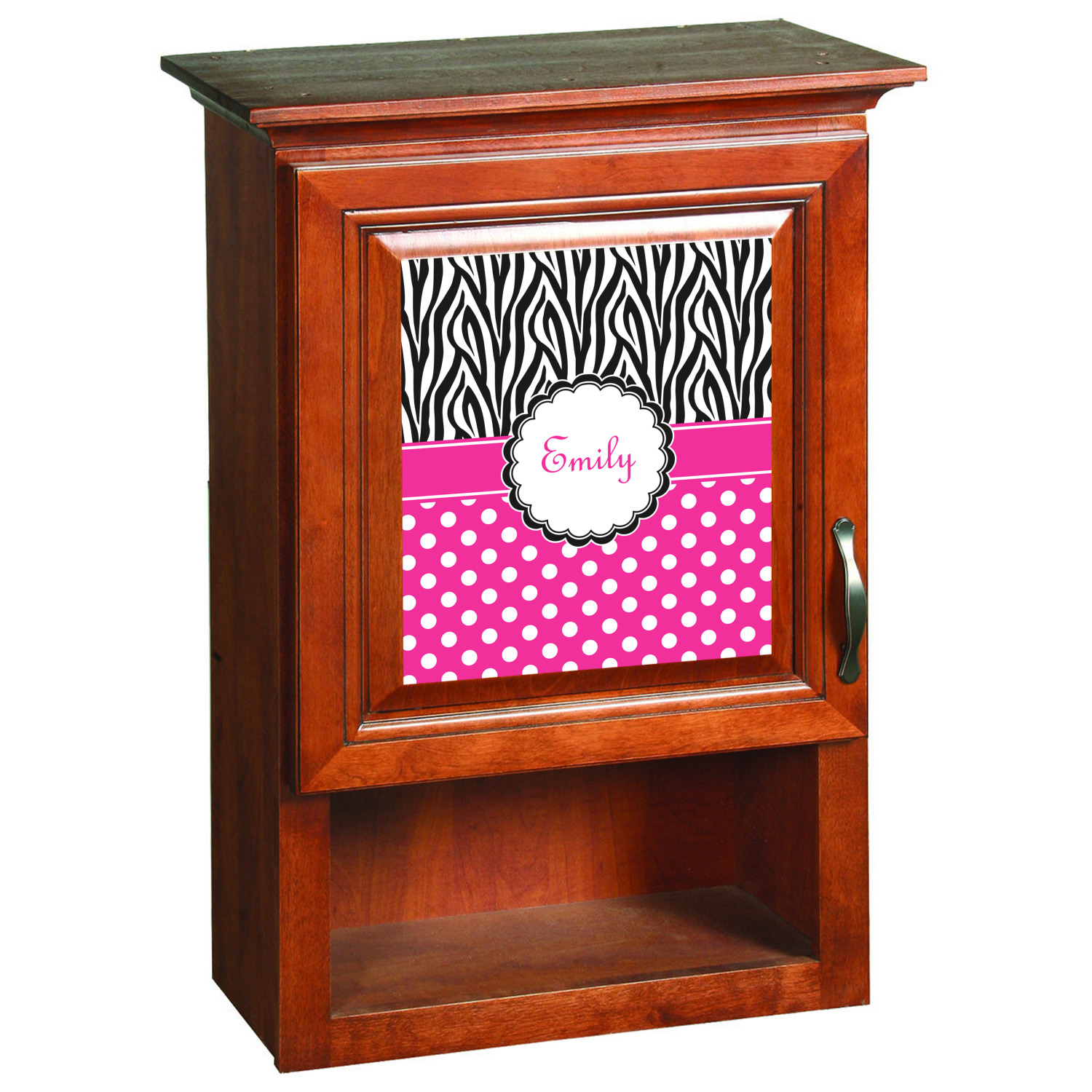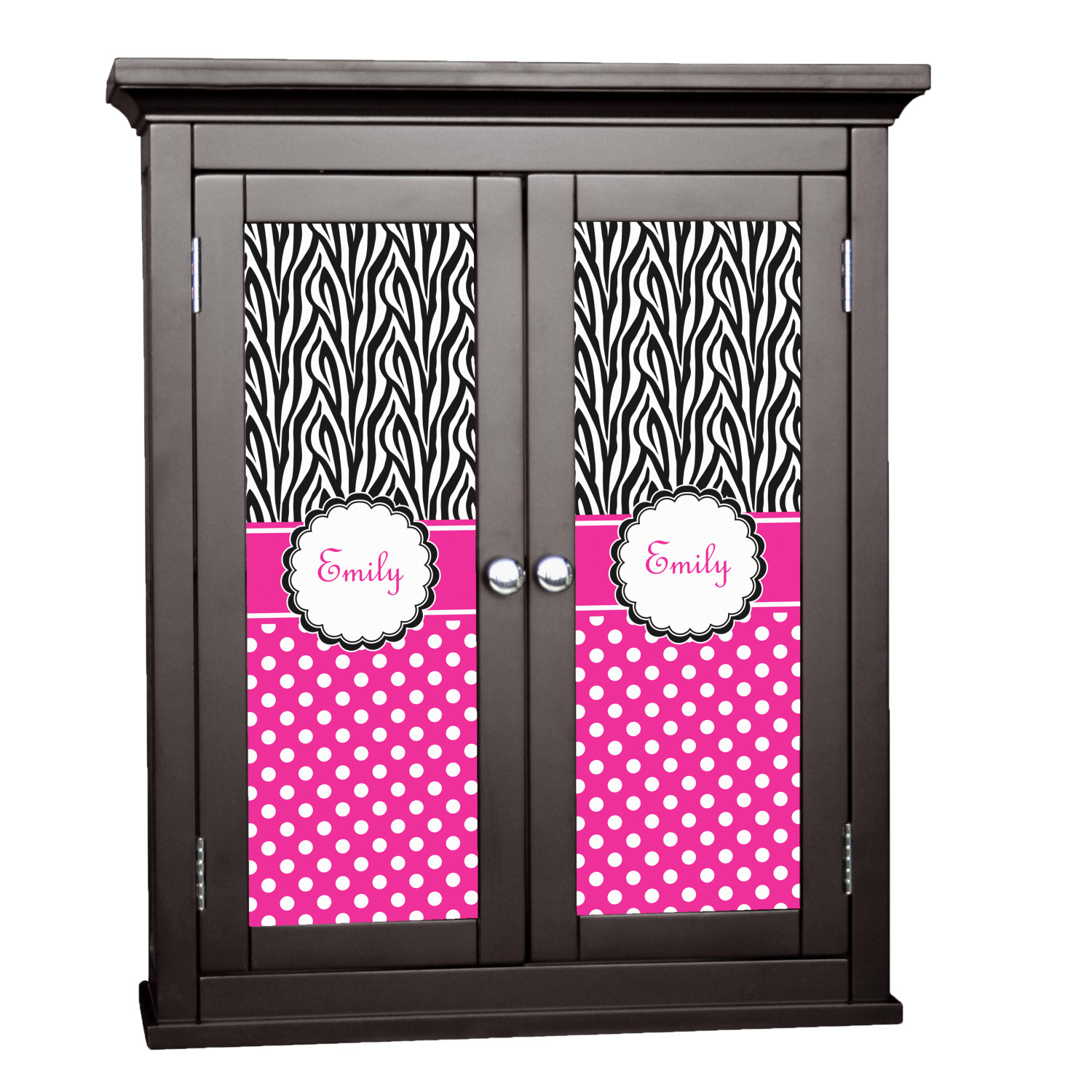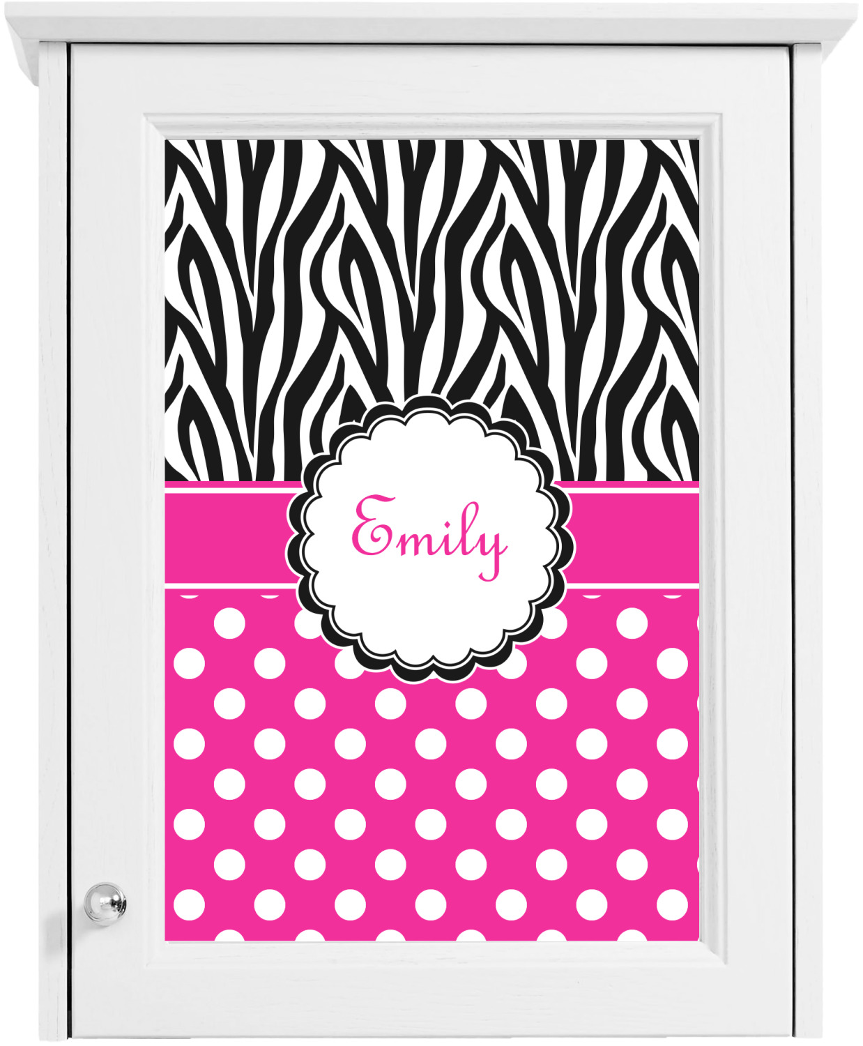 Here is a wonderful zebra print with a fun, modern twist. The top of this design features a black and white traditional zebra print. To add color and flair we have paired the zebra pattern with a fun hot pink and white polka dot pattern on bottom.