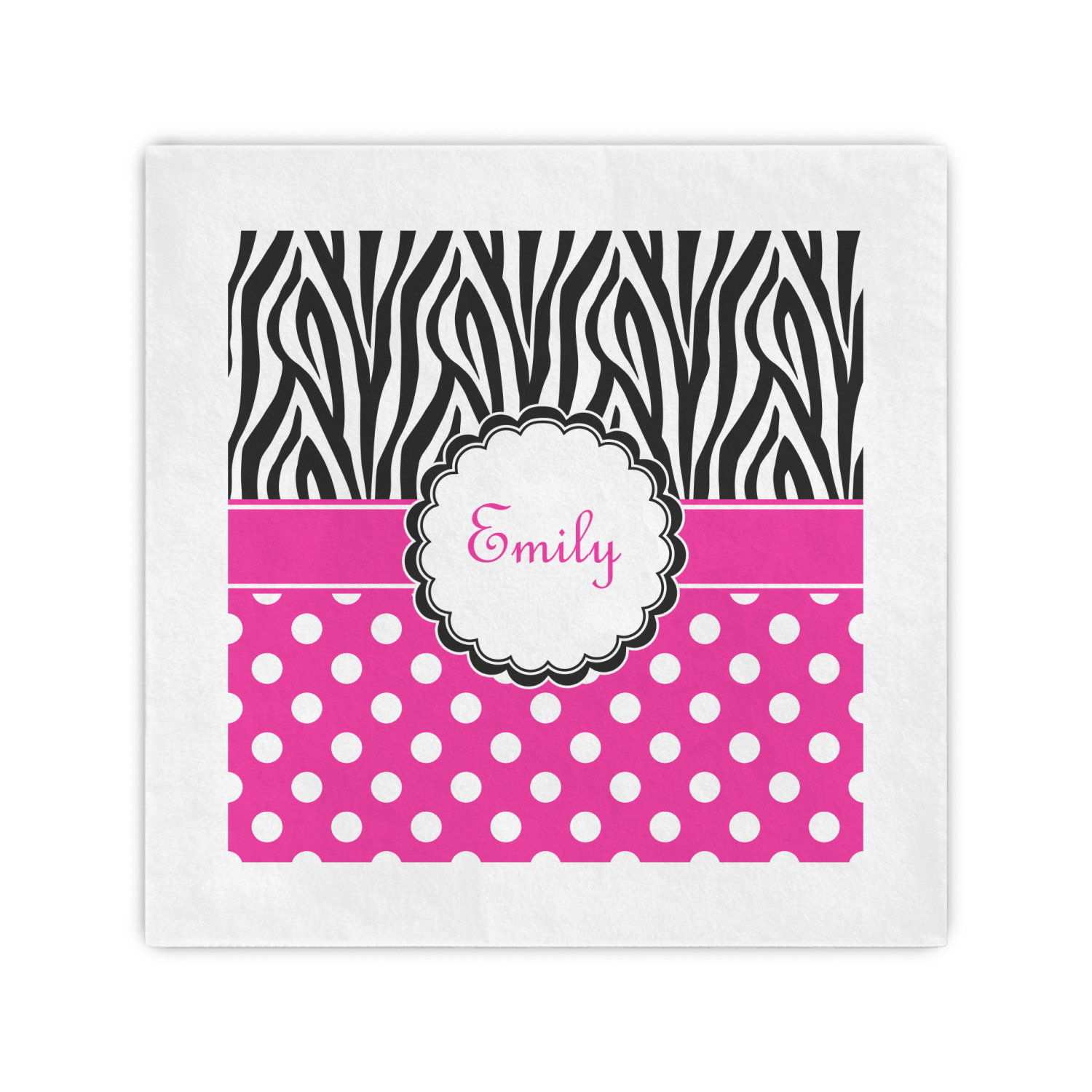Here is a wonderful zebra print with a fun, modern twist. The top of this design features a black and white traditional zebra print. To add color and flair we have paired the zebra pattern with a fun hot pink and white polka dot pattern on bottom.