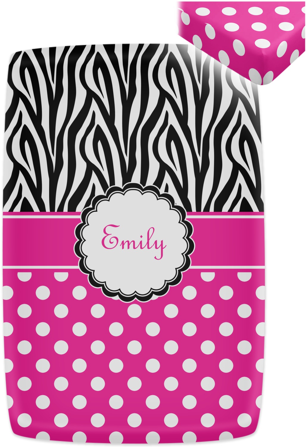 Here is a wonderful zebra print with a fun, modern twist. The top of this design features a black and white traditional zebra print. To add color and flair we have paired the zebra pattern with a fun hot pink and white polka dot pattern on bottom.