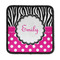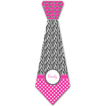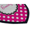 A white scalloped circle label edged in black highlights the personalization of your choice. A wide hot pink band trimmed in white completes the design.