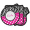 Here is a wonderful zebra print with a fun, modern twist. The top of this design features a black and white traditional zebra print. To add color and flair we have paired the zebra pattern with a fun hot pink and white polka dot pattern on bottom.