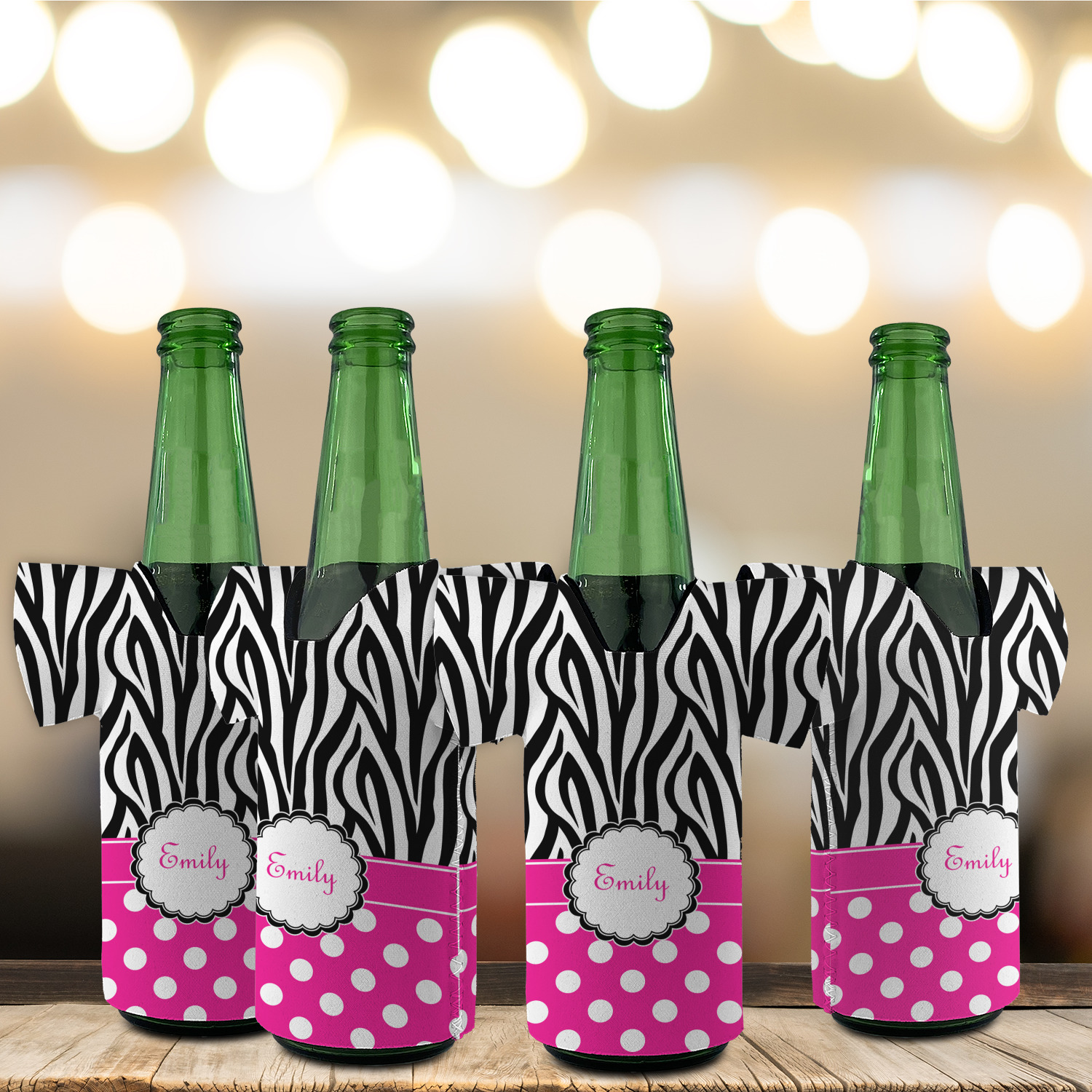Fabricated from a thick, insulating neoprene, these custom can sleeve keep your drink cold, while proudly displaying your customization on all sides. These can sleeves are designed to fit most 12oz bottles. Available in two types - zipper cooler for insulating the full bottle or the jersey style for sports season. Also available as a single can sleeve or in a set of 4 for you to share with friends and family. For convenient storage, they can also be folded.