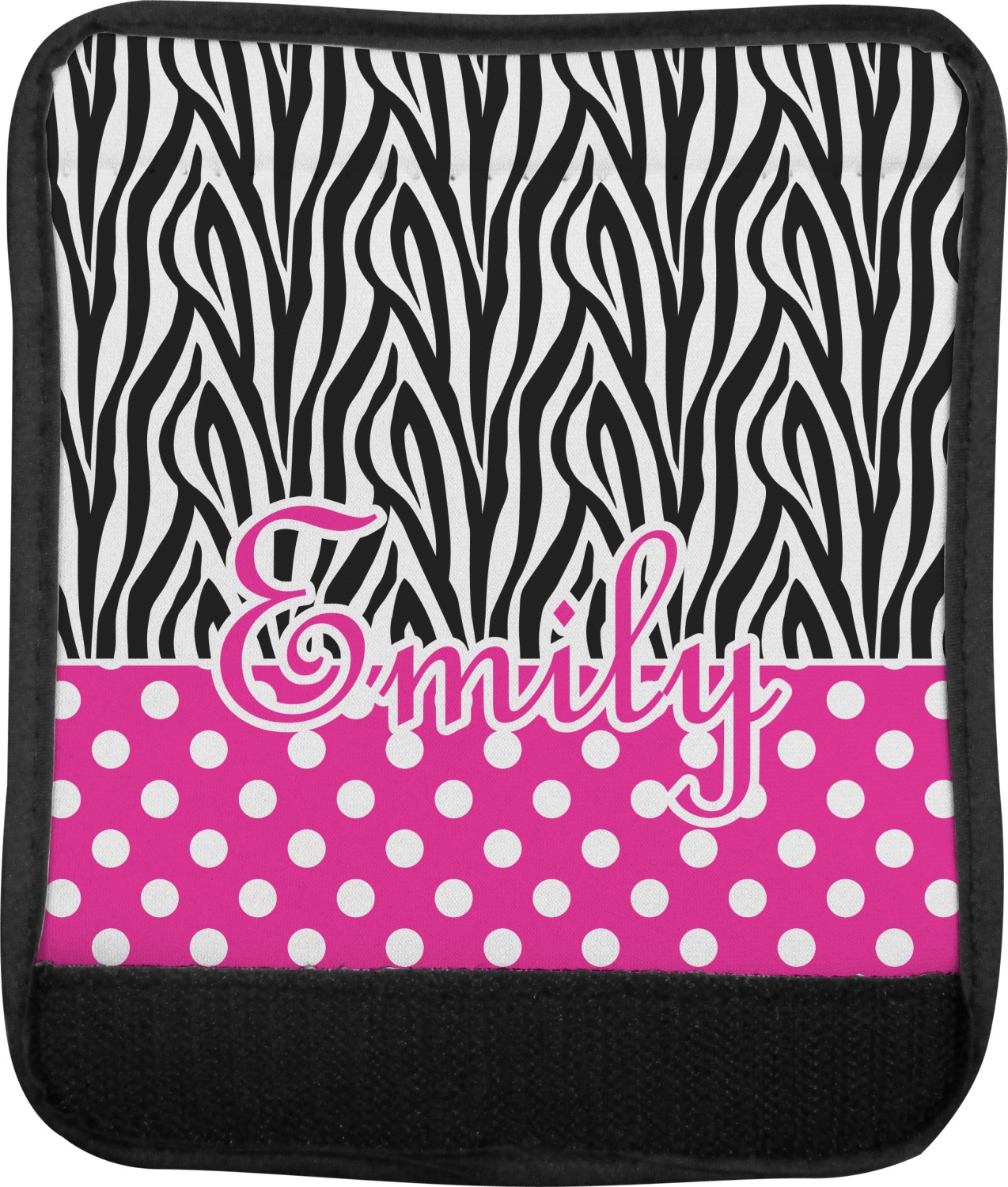 Here is a wonderful zebra print with a fun, modern twist. The top of this design features a black and white traditional zebra print. To add color and flair we have paired the zebra pattern with a fun hot pink and white polka dot pattern on bottom.