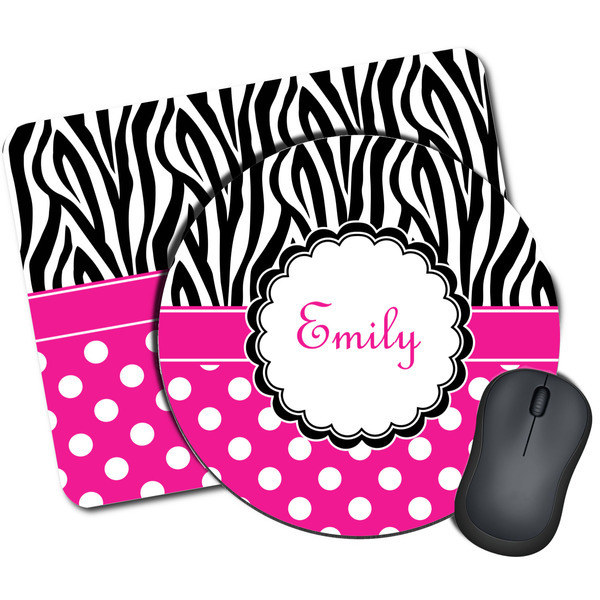 Here is a wonderful zebra print with a fun, modern twist. The top of this design features a black and white traditional zebra print. To add color and flair we have paired the zebra pattern with a fun hot pink and white polka dot pattern on bottom.
