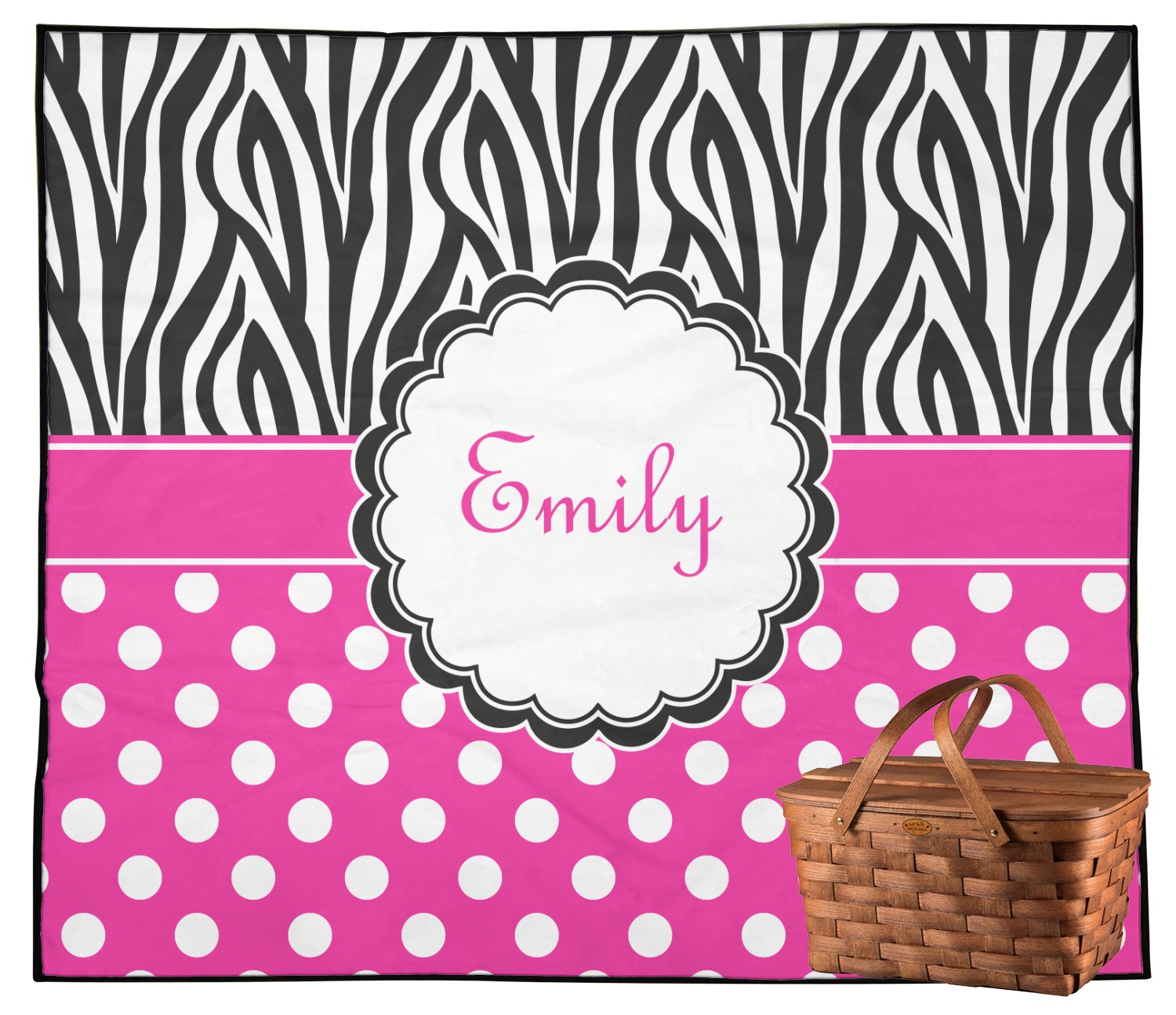 Here is a wonderful zebra print with a fun, modern twist. The top of this design features a black and white traditional zebra print. To add color and flair we have paired the zebra pattern with a fun hot pink and white polka dot pattern on bottom.