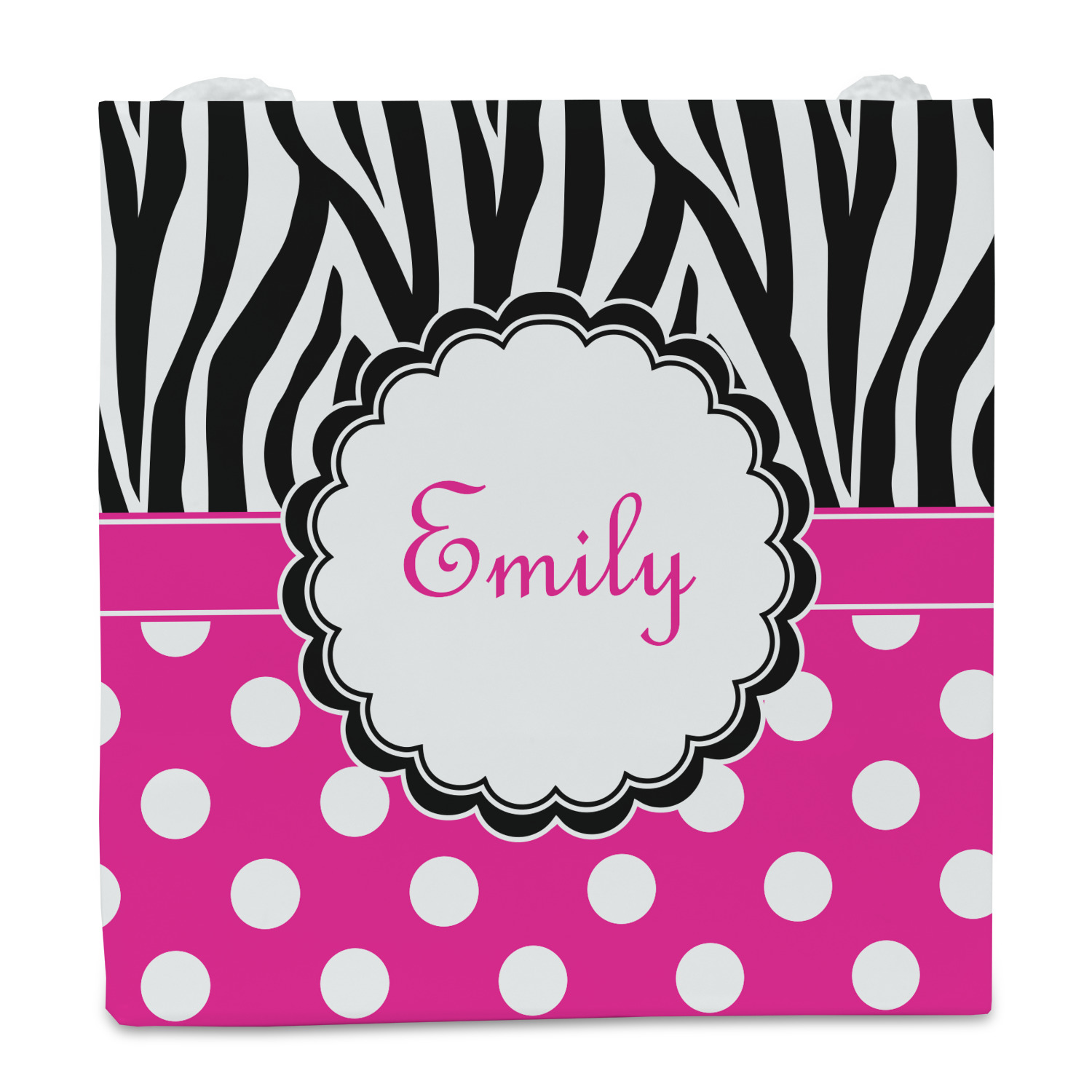 Here is a wonderful zebra print with a fun, modern twist. The top of this design features a black and white traditional zebra print. To add color and flair we have paired the zebra pattern with a fun hot pink and white polka dot pattern on bottom.