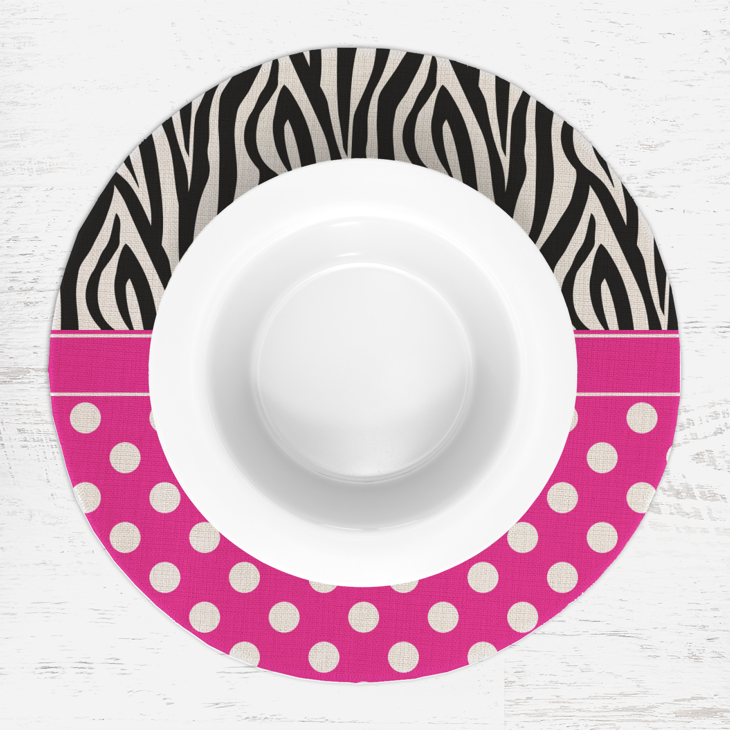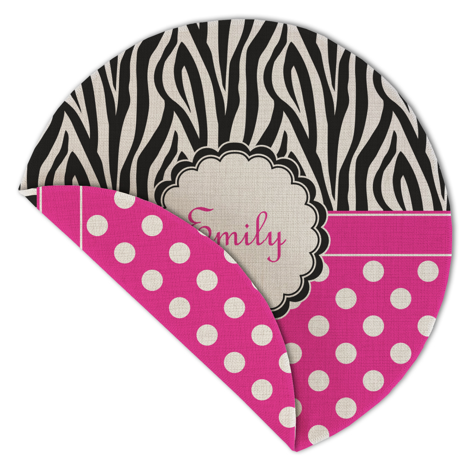 Here is a wonderful zebra print with a fun, modern twist. The top of this design features a black and white traditional zebra print. To add color and flair we have paired the zebra pattern with a fun hot pink and white polka dot pattern on bottom.