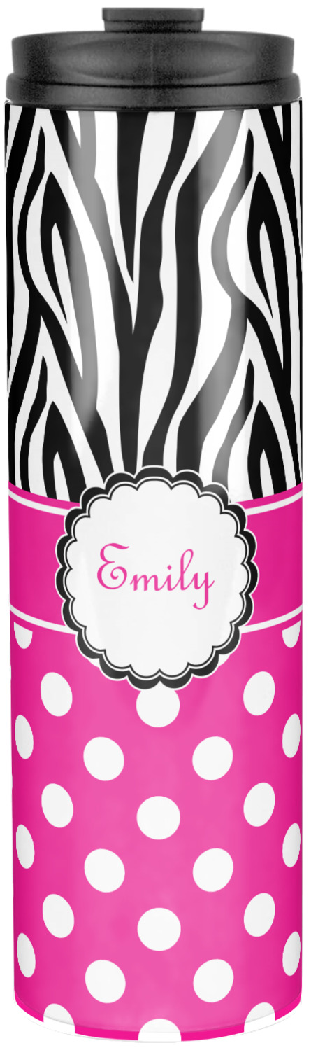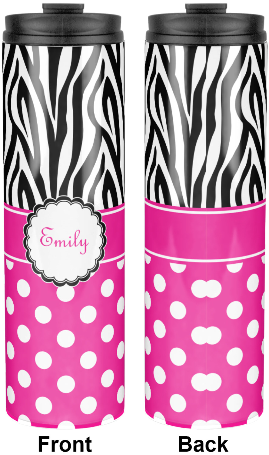 Here is a wonderful zebra print with a fun, modern twist. The top of this design features a black and white traditional zebra print. To add color and flair we have paired the zebra pattern with a fun hot pink and white polka dot pattern on bottom.
