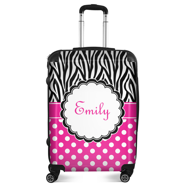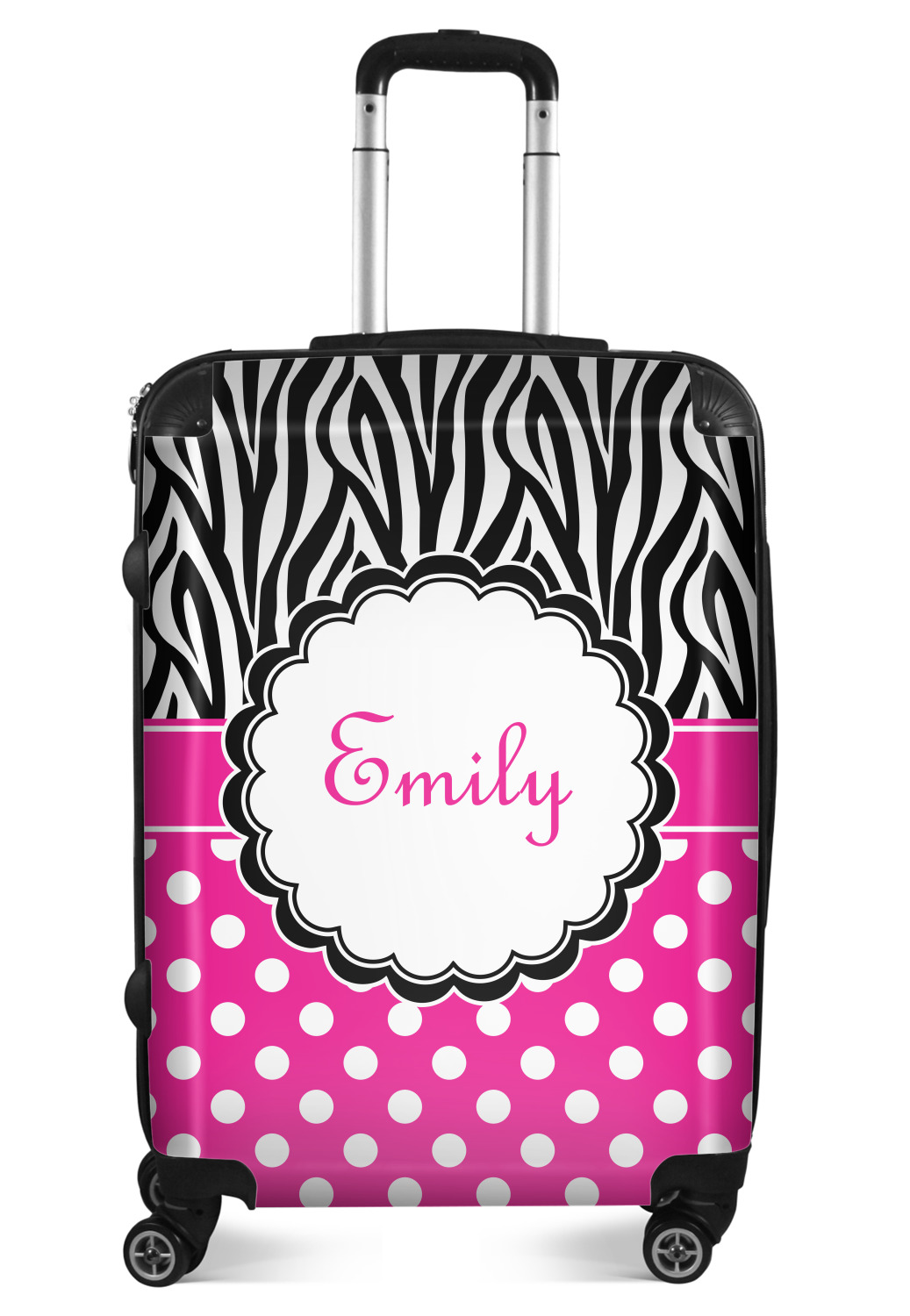 Here is a wonderful zebra print with a fun, modern twist. The top of this design features a black and white traditional zebra print. To add color and flair we have paired the zebra pattern with a fun hot pink and white polka dot pattern on bottom.