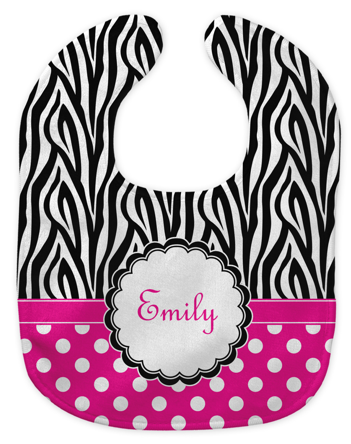Made of soft polyester, each customizable bib hugs comfortably around the neck to catch every drip and drool. Each bib design is printed with baby-safe ink and finished with a secure stitch pattern and velcro clasp. We carry two customizable bib styles -Microfiber Velour and Jersey Knit.
