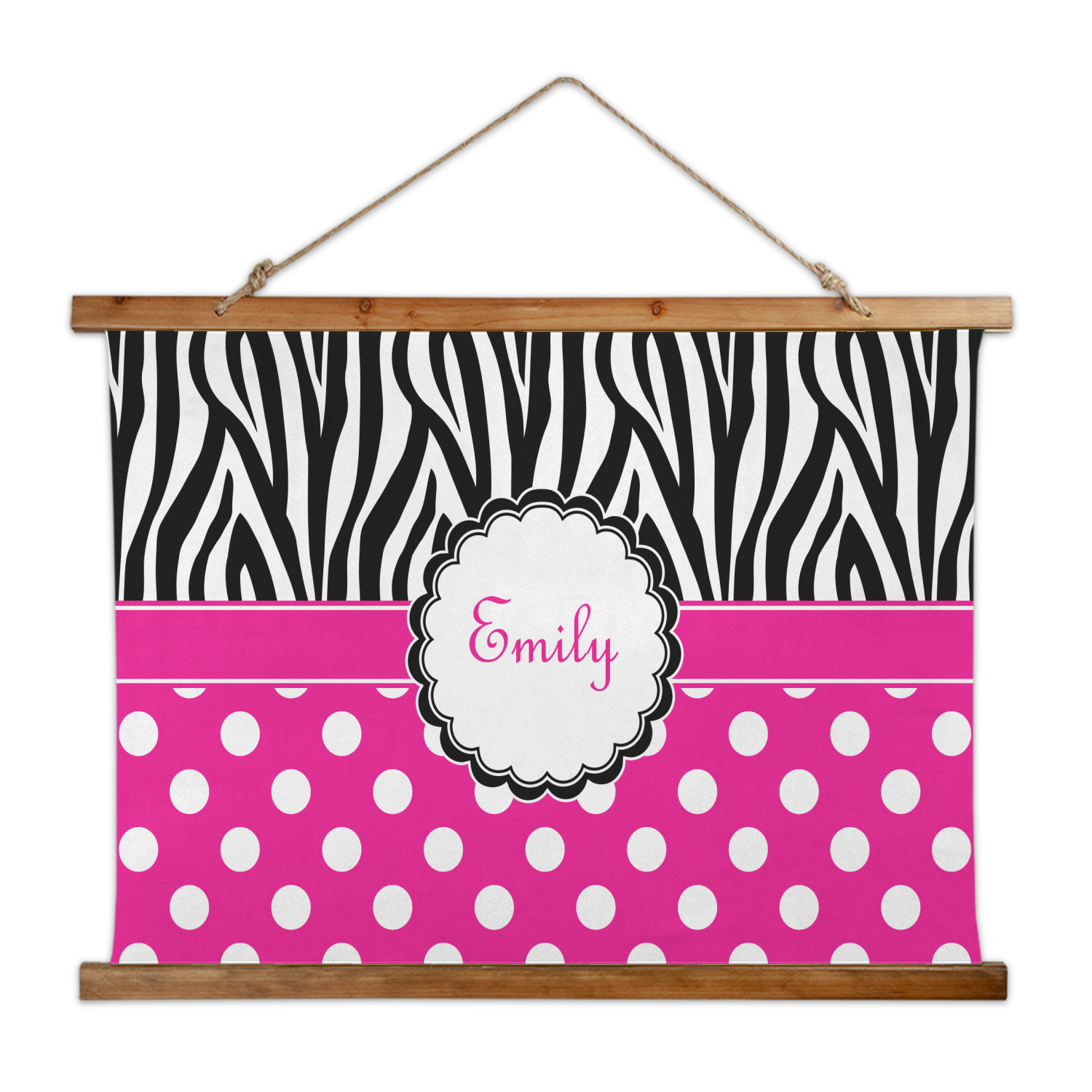 Here is a wonderful zebra print with a fun, modern twist. The top of this design features a black and white traditional zebra print. To add color and flair we have paired the zebra pattern with a fun hot pink and white polka dot pattern on bottom.