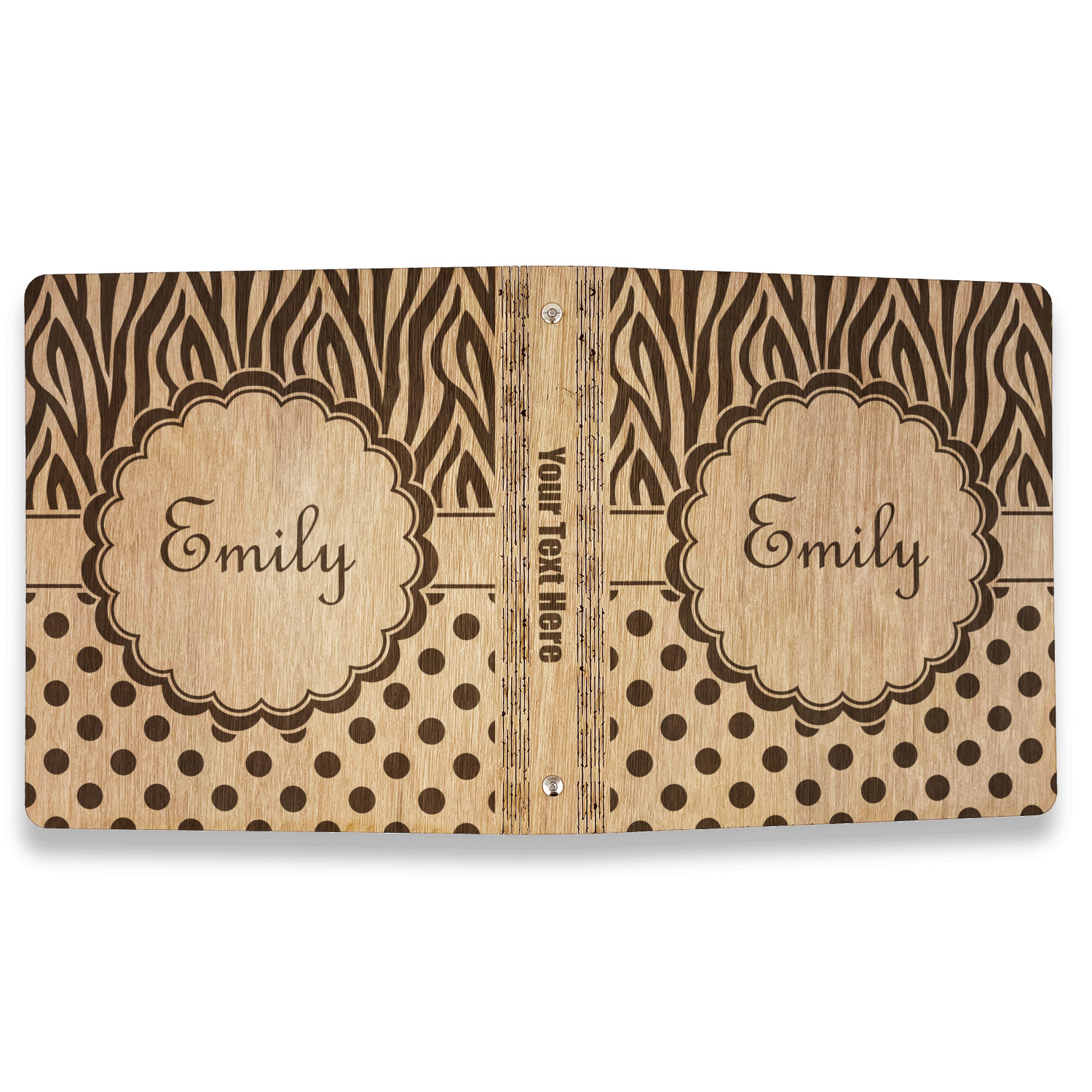 Made from premium hardwood, these are laser engraved then polished with wax to give a nice sheen and smooth feel to the product. The inside of the binders are finished with a faux leather material which is bonded to the inside of the wood to strengthen the wood and give the inside the same refined finish. The rustic brown and gold leather material adds a nice classic touch to the binders.
