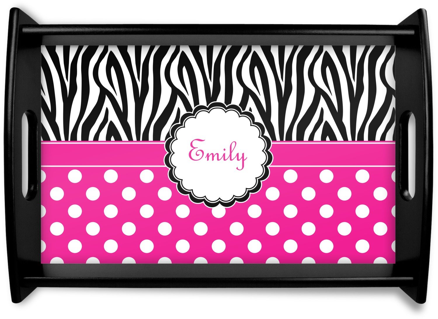 Here is a wonderful zebra print with a fun, modern twist. The top of this design features a black and white traditional zebra print. To add color and flair we have paired the zebra pattern with a fun hot pink and white polka dot pattern on bottom.