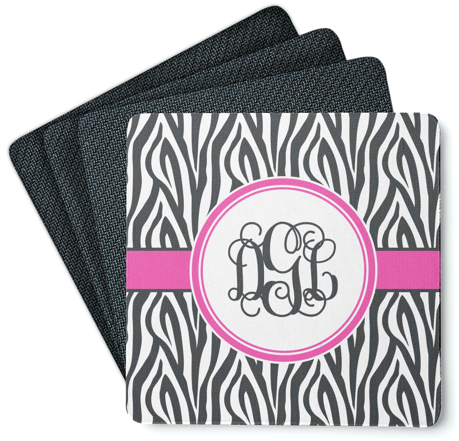 These drink coasters have a smooth, polyester top and a textured, rubber backing on its bottom. The non-slip rubber backing underneath works to keep any spills at bay. At 4 by 4 by 0.25 inches thick, these custom coasters are a suitable size for most drinkware. Your personalization is displayed atop the face of the cup coaster. We sell these rubber coasters in two different shapes: square and round. You can buy each shape as singulars or as a set of 4.