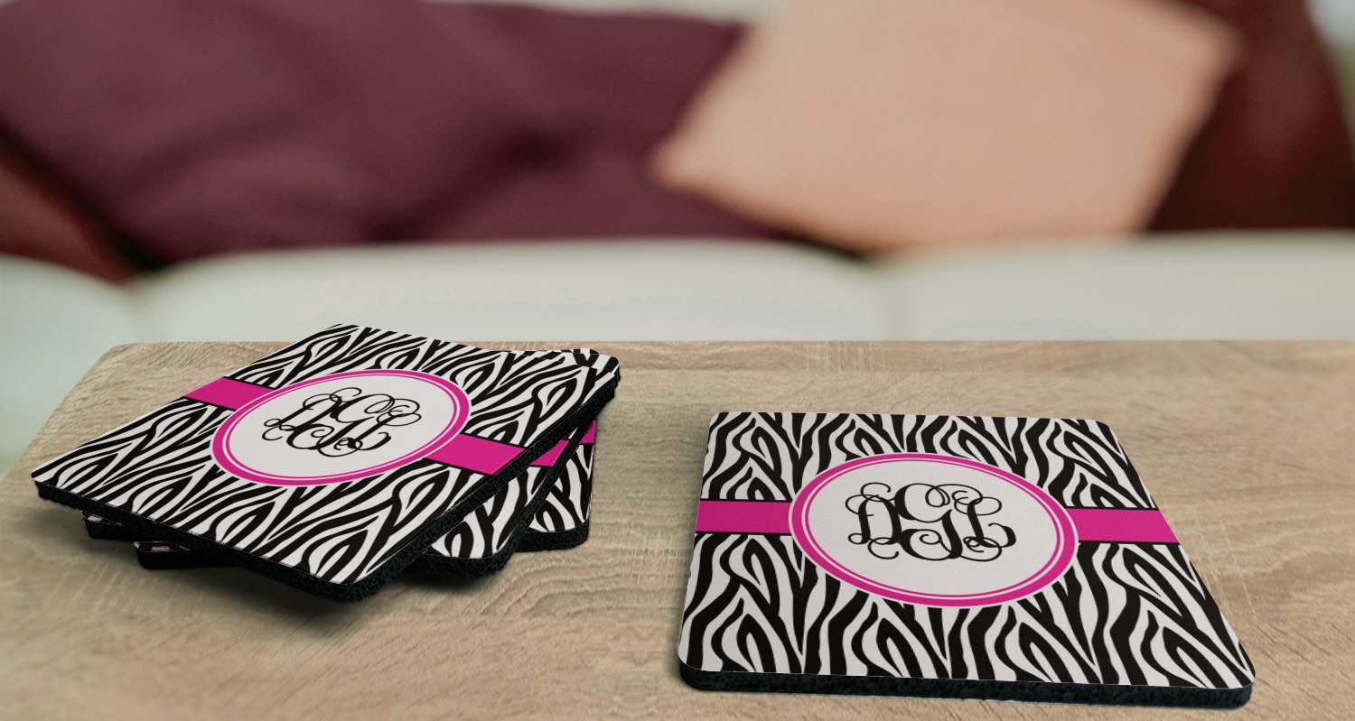 Replace your boring, run-of-the-mill coasters with a set of 4 personalized coasters! When personalized, these coasters will protect your beloved surfaces while adding to your home's decor! Thanks to your coasters bright colors and unique design, your guests will be eager to use them!