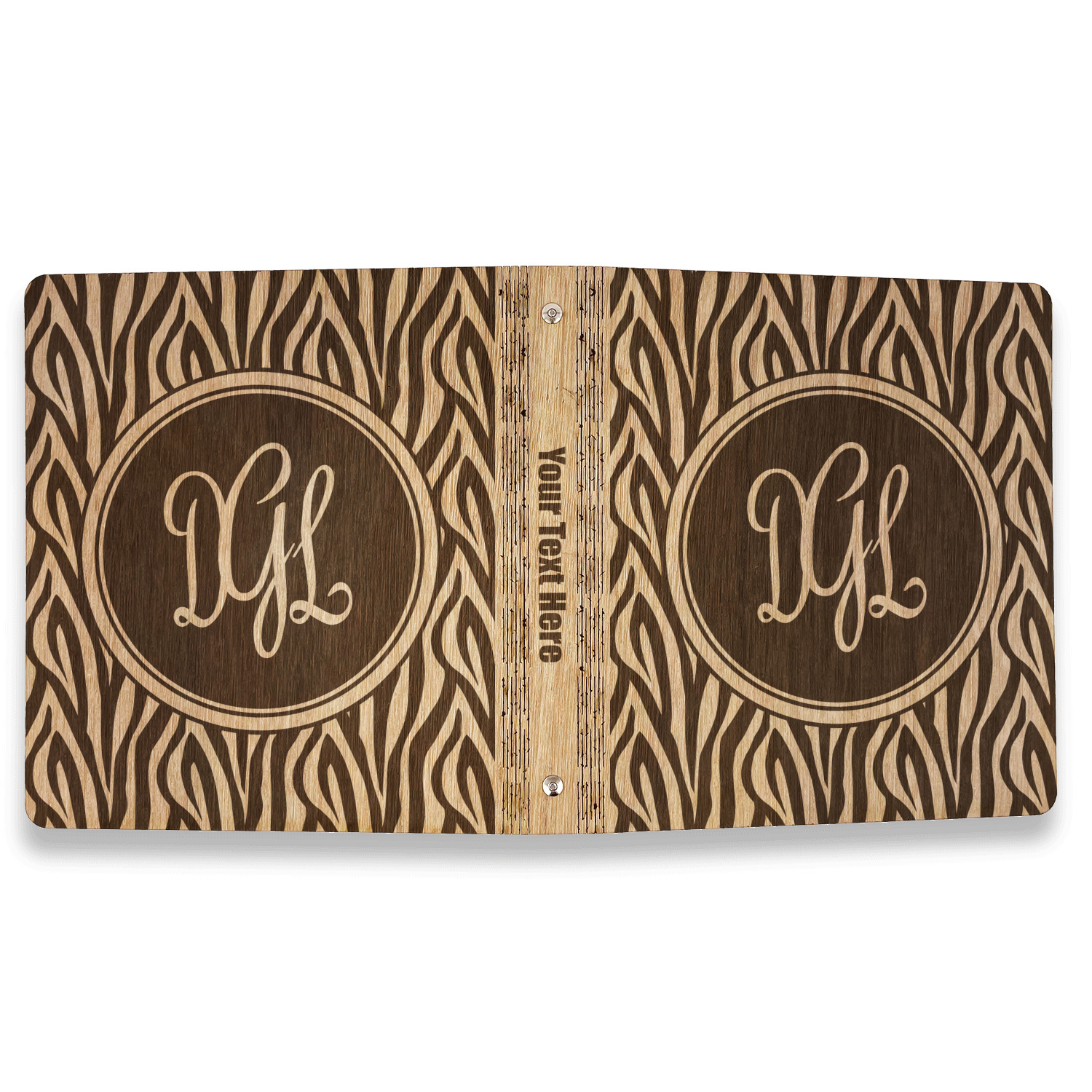 Made from premium hardwood, these are laser engraved then polished with wax to give a nice sheen and smooth feel to the product. The inside of the binders are finished with a faux leather material which is bonded to the inside of the wood to strengthen the wood and give the inside the same refined finish. The rustic brown and gold leather material adds a nice classic touch to the binders.