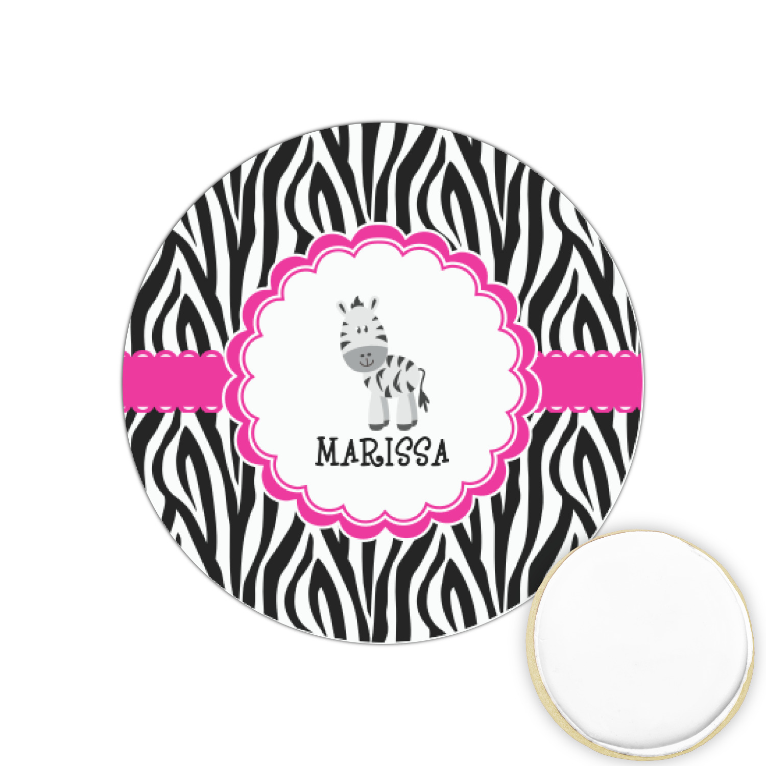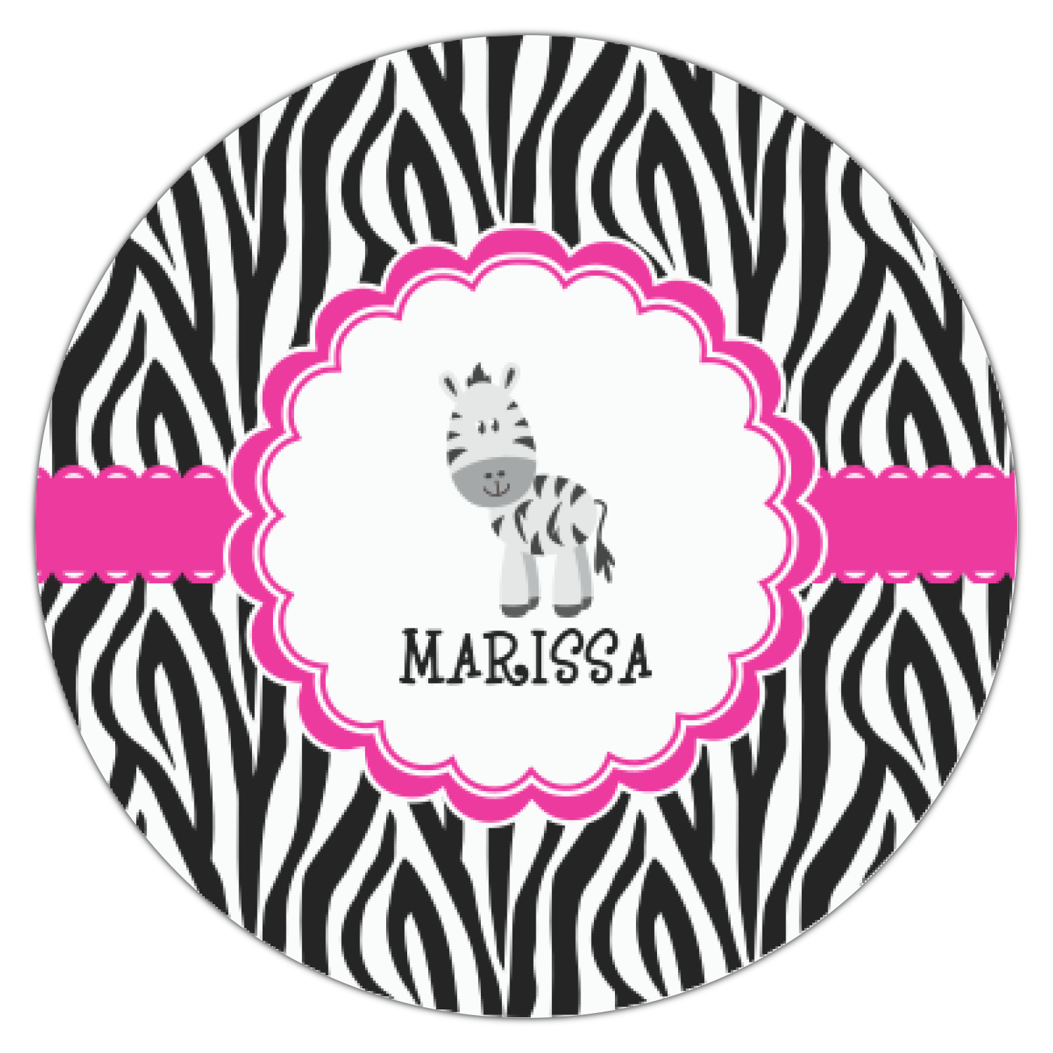 This cute band highlights a scalloped coordinating circle label featuring an adorable zebra. Underneath the zebra there is ample room for personalization of your choice.
