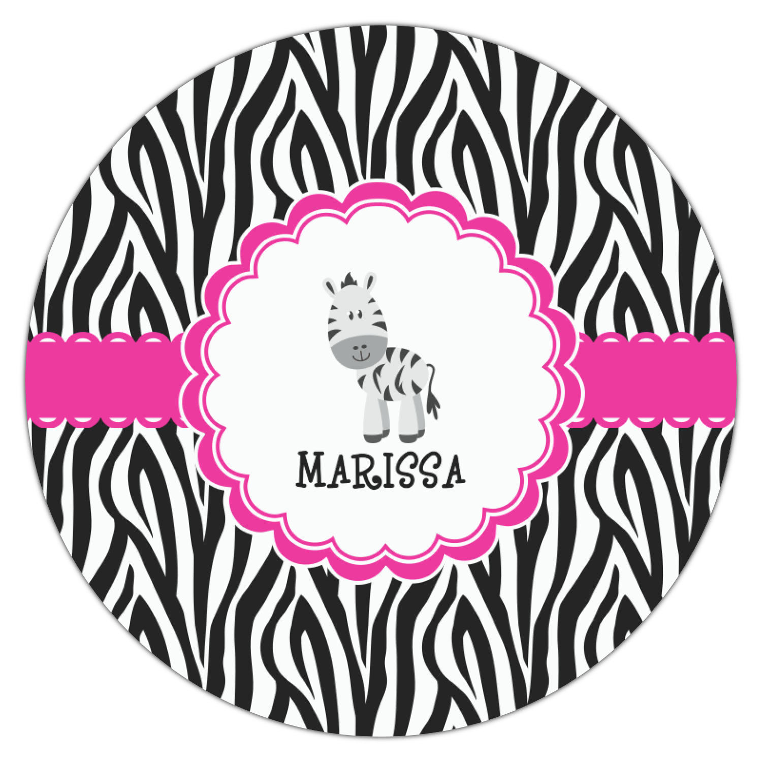This cute band highlights a scalloped coordinating circle label featuring an adorable zebra. Underneath the zebra there is ample room for personalization of your choice.