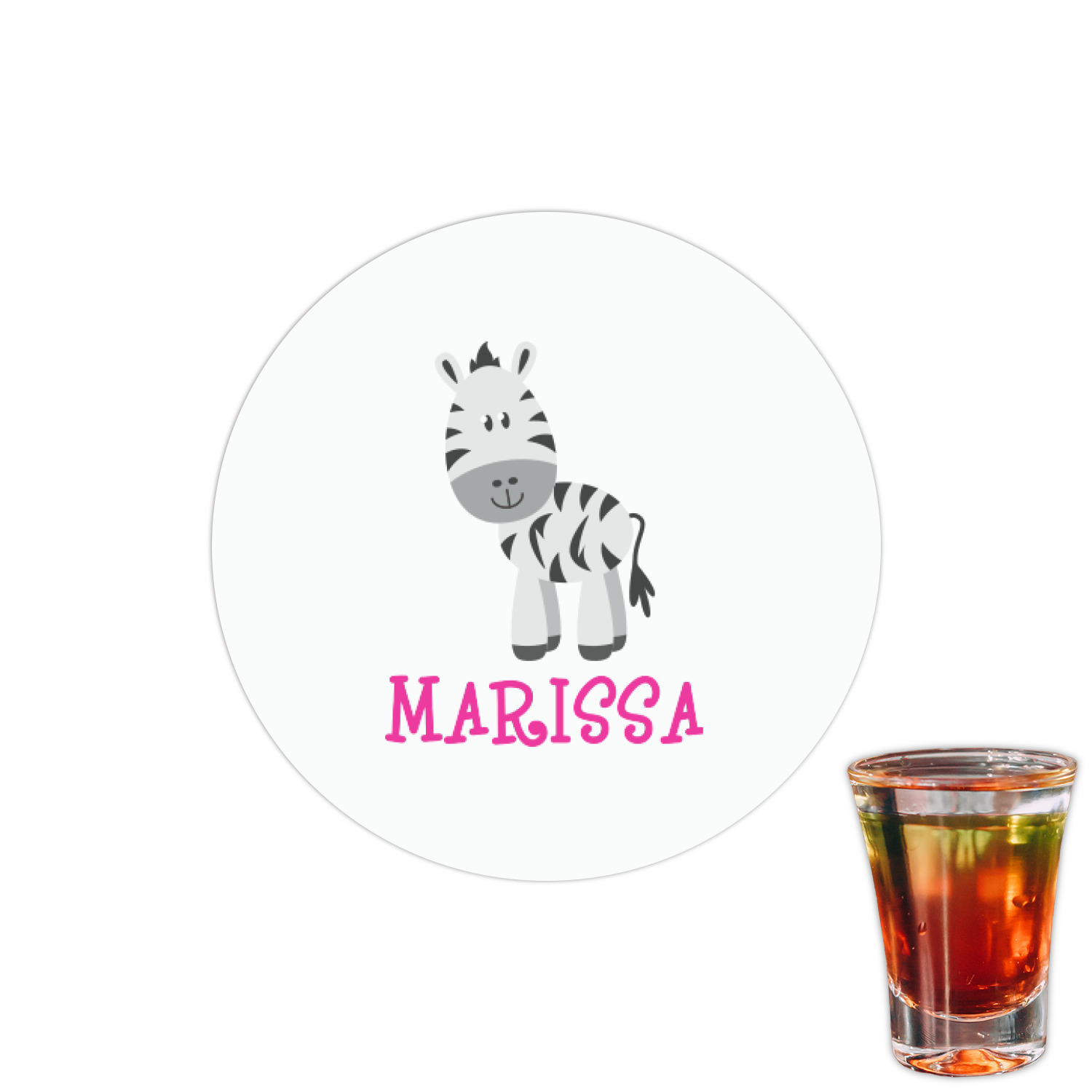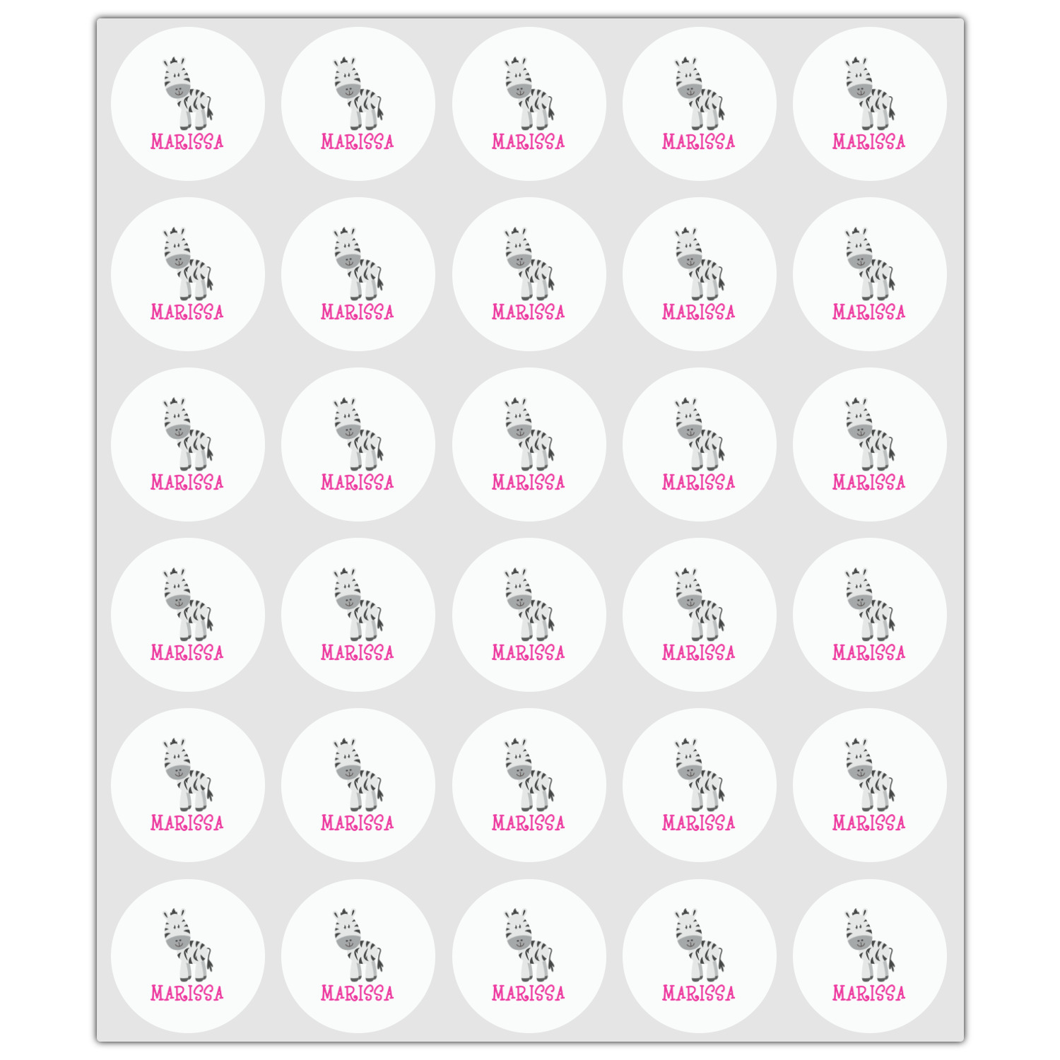 This cute band highlights a scalloped coordinating circle label featuring an adorable zebra. Underneath the zebra there is ample room for personalization of your choice.