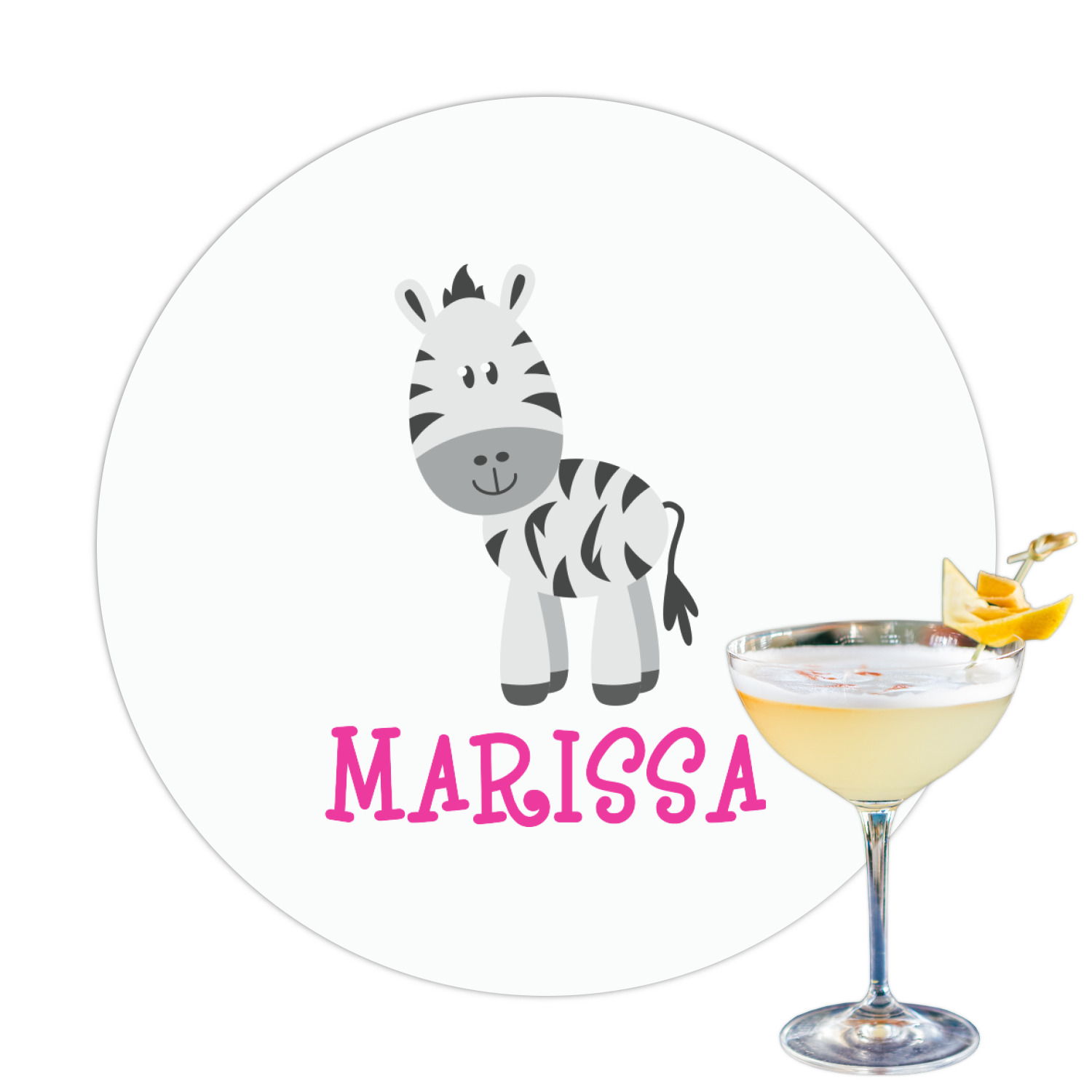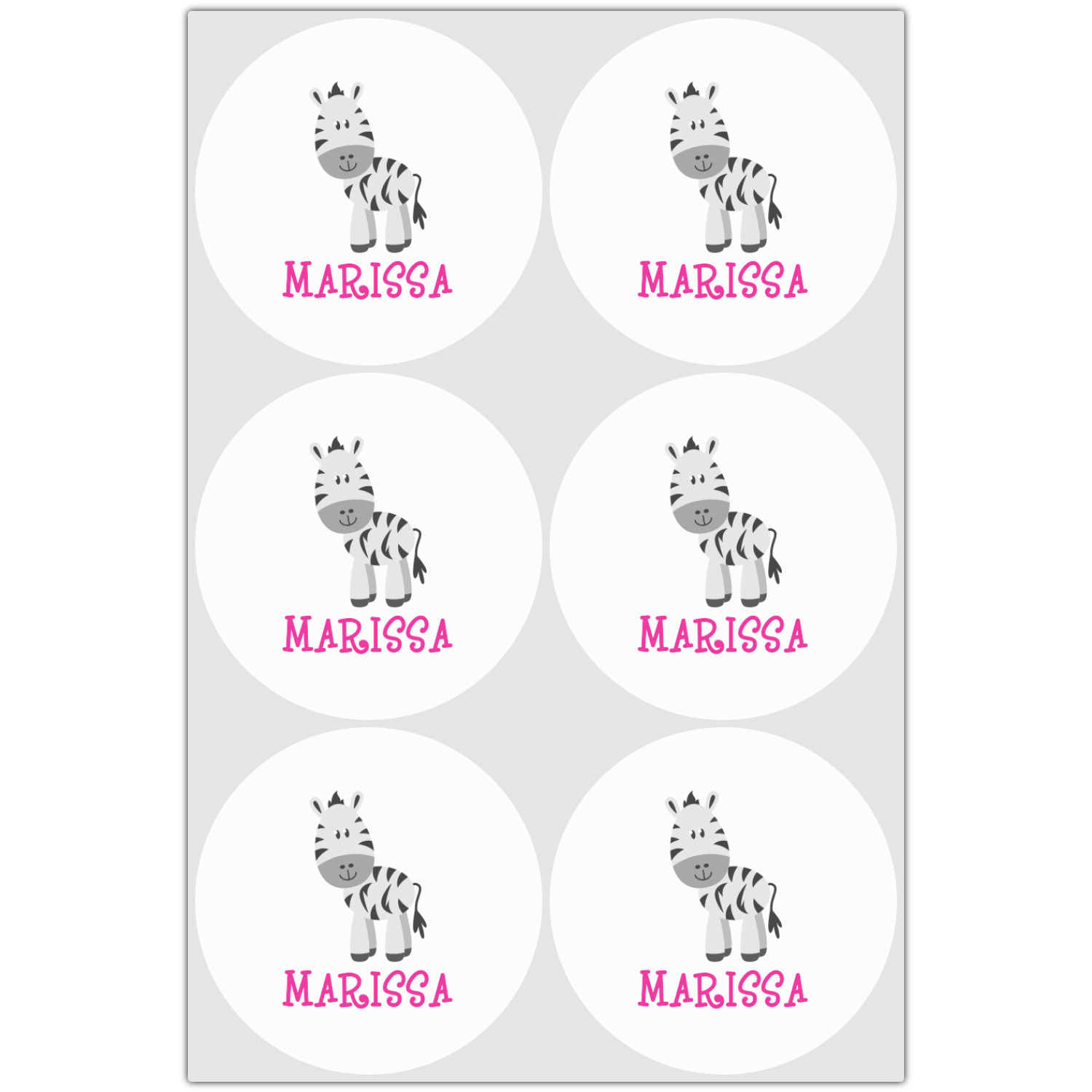 This cute band highlights a scalloped coordinating circle label featuring an adorable zebra. Underneath the zebra there is ample room for personalization of your choice.