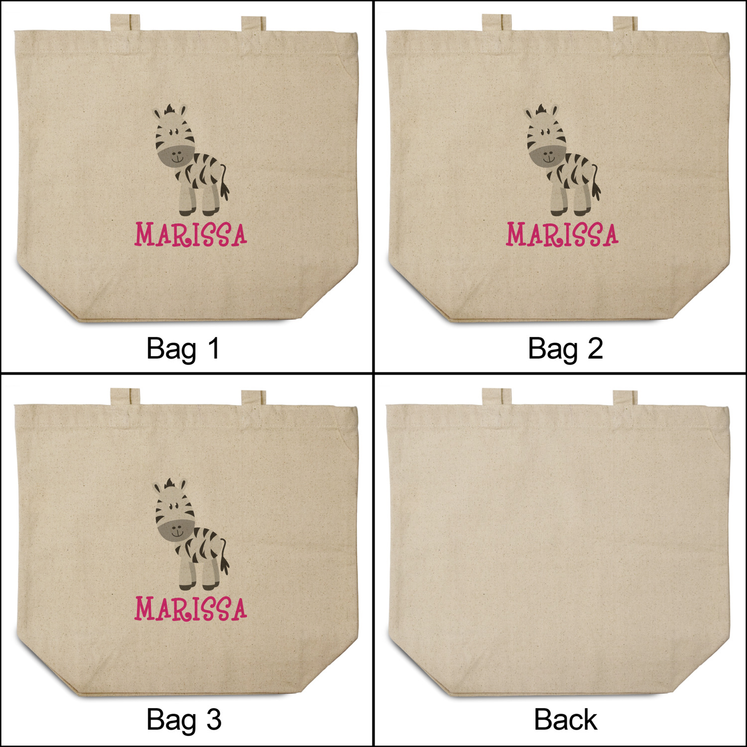 These cotton totes are washable and easy to care for, and they can be folded flat for storage. Your artwork, logo, or photo is printed in full color directly on the cotton tote in the front.