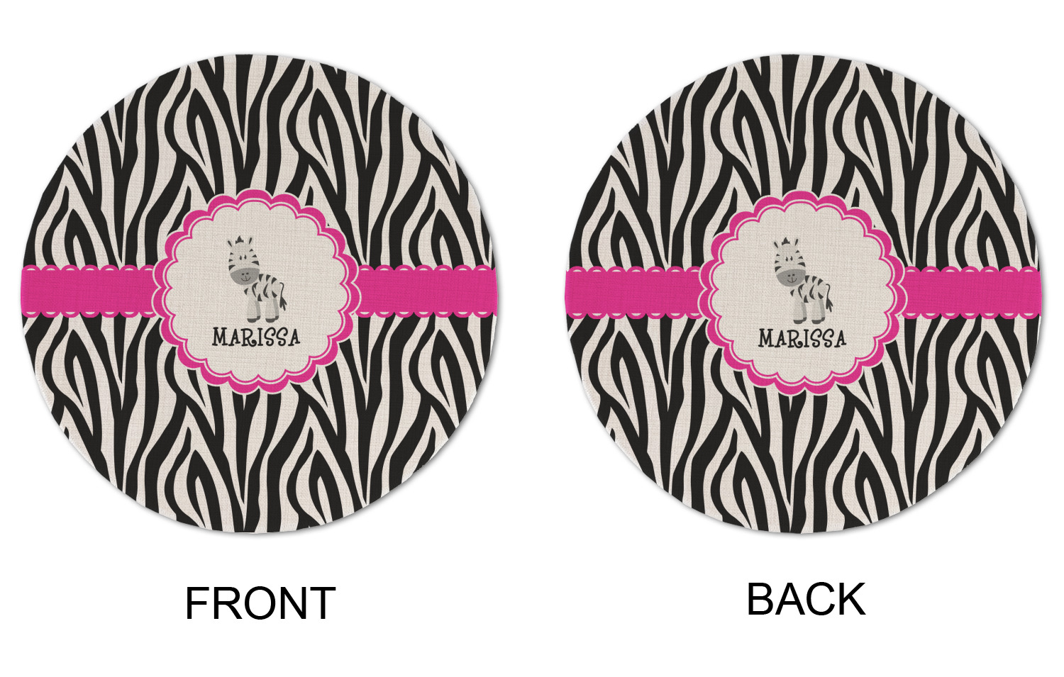 This cute band highlights a scalloped coordinating circle label featuring an adorable zebra. Underneath the zebra there is ample room for personalization of your choice.