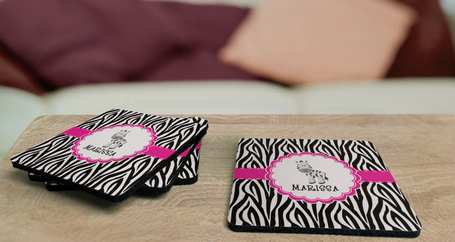 Replace your boring, run-of-the-mill coasters with a set of 4 personalized coasters! When personalized, these coasters will protect your beloved surfaces while adding to your home's decor! Thanks to your coasters bright colors and unique design, your guests will be eager to use them!
