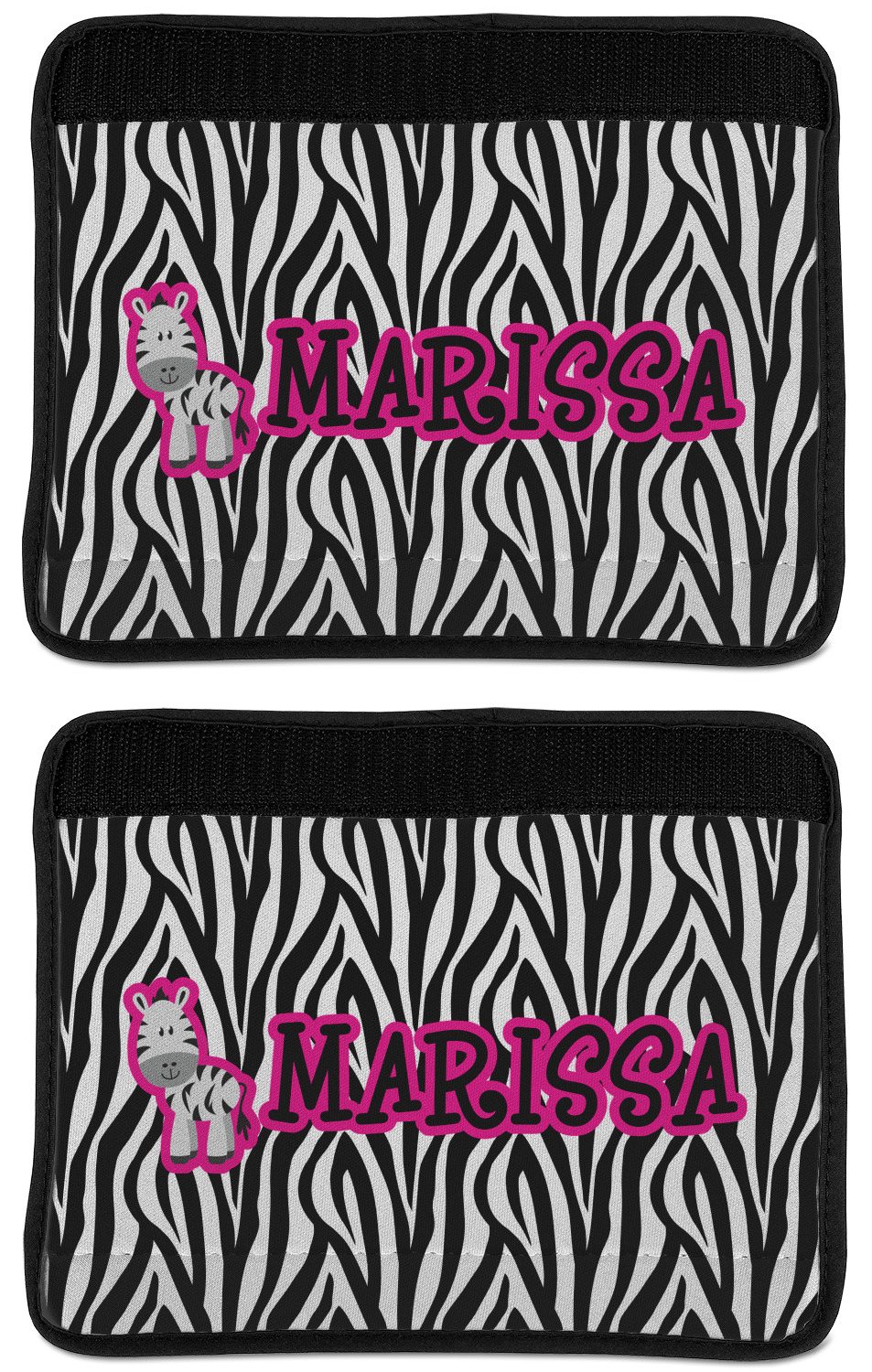 Made from neoprene, our seat belt strap covers wrap around the belt itself and have a Velcro tab for easy attachment and closure. The belt's edges are trimmed with a black polyester for a secure finish. Each cover is 9.5 by 7 inches when open and 9.5 by 2.5 inches when closed. We print your personalized design on the face of the seat belt pad.