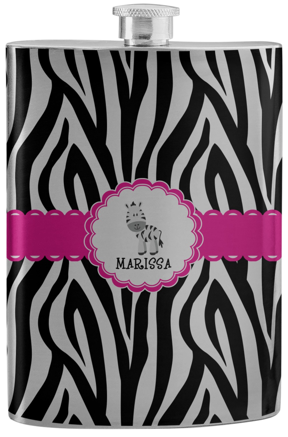 The quintessential animal print is zebra. Stylish and traditional this zebra pattern will withstand the test of time. A touch of whimsy is added to this design with a ruffled wide hot pink band.