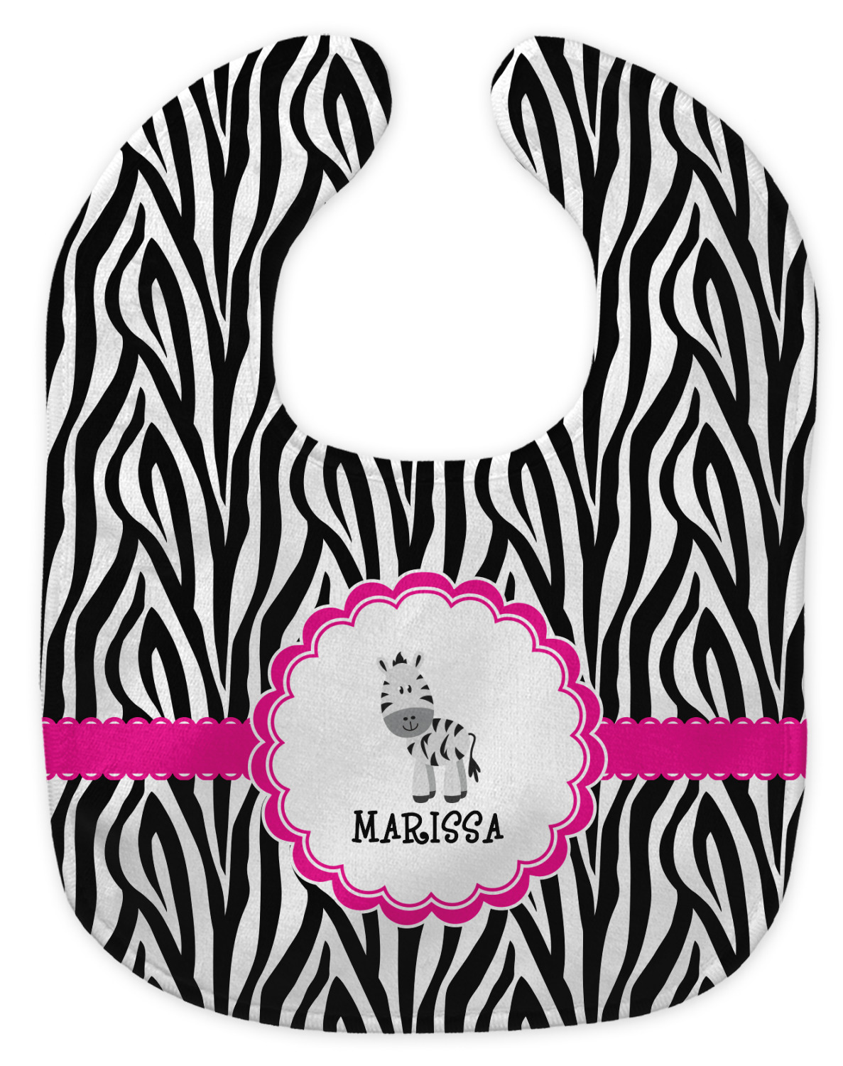Made of soft polyester, each customizable bib hugs comfortably around the neck to catch every drip and drool. Each bib design is printed with baby-safe ink and finished with a secure stitch pattern and velcro clasp. We carry two customizable bib styles -Microfiber Velour and Jersey Knit.