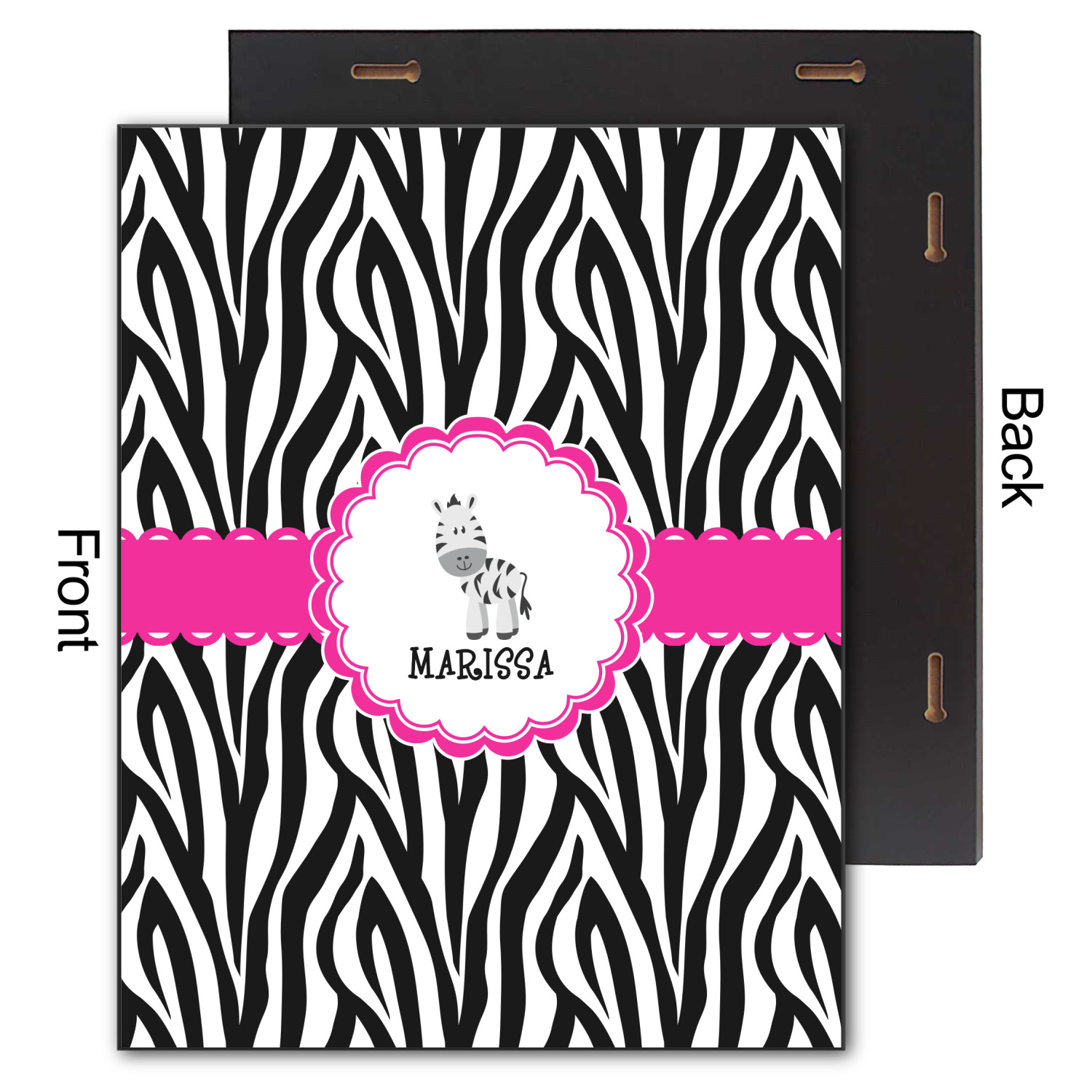 This cute band highlights a scalloped coordinating circle label featuring an adorable zebra. Underneath the zebra there is ample room for personalization of your choice.