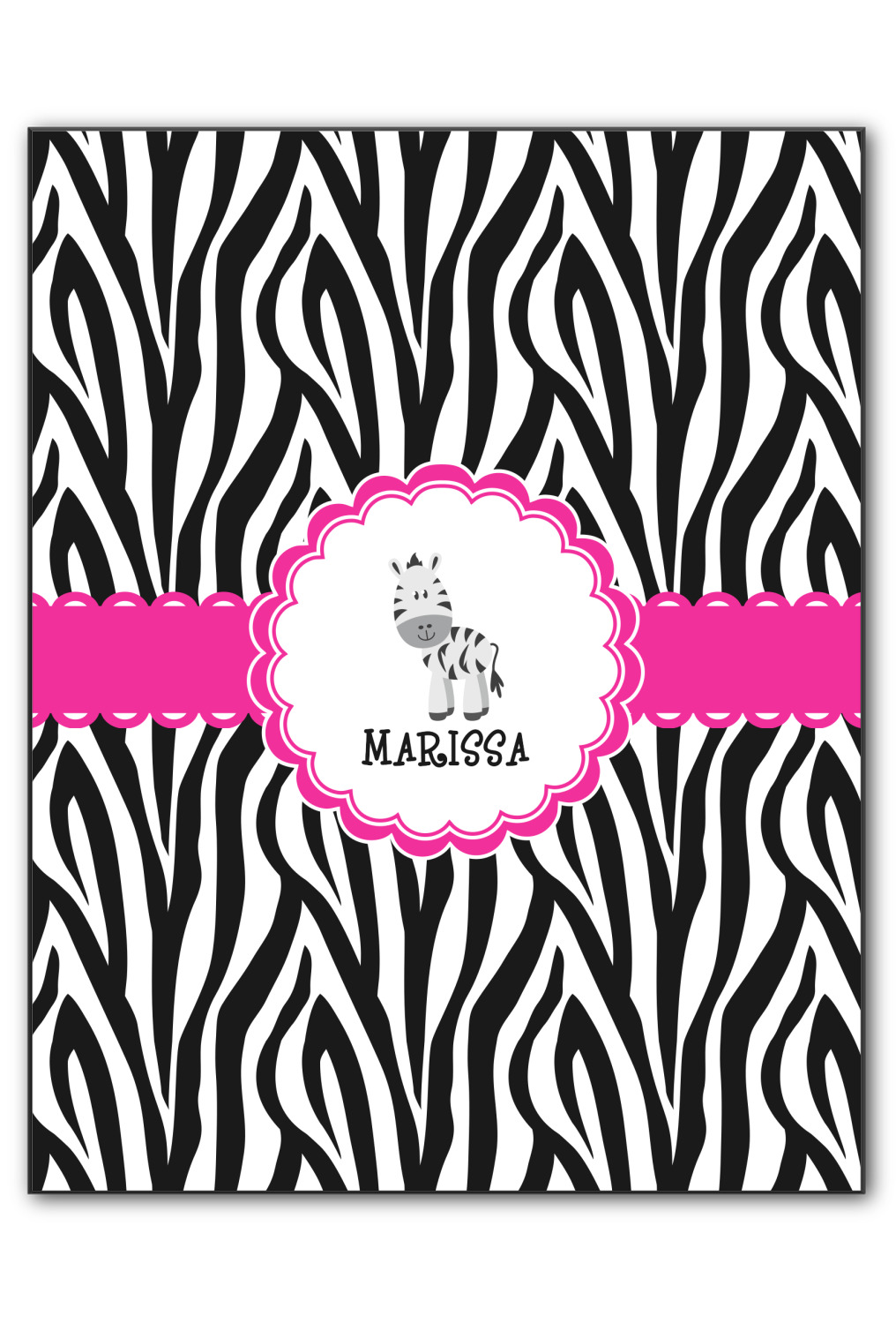 The quintessential animal print is zebra. Stylish and traditional this zebra pattern will withstand the test of time. A touch of whimsy is added to this design with a ruffled wide hot pink band.