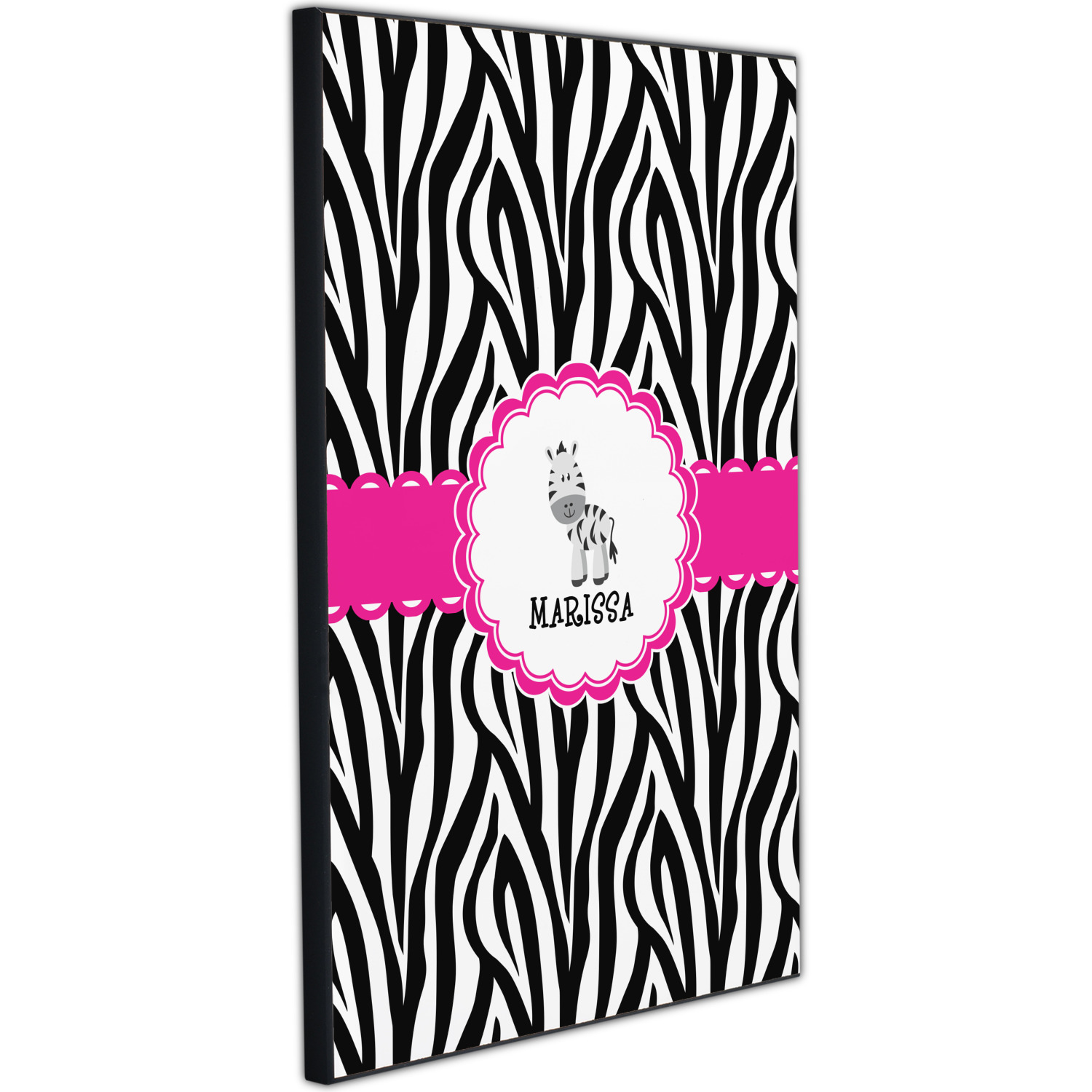 This cute band highlights a scalloped coordinating circle label featuring an adorable zebra. Underneath the zebra there is ample room for personalization of your choice.