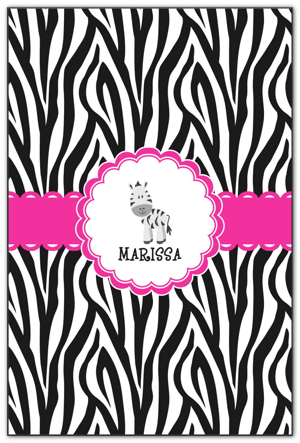The quintessential animal print is zebra. Stylish and traditional this zebra pattern will withstand the test of time. A touch of whimsy is added to this design with a ruffled wide hot pink band.