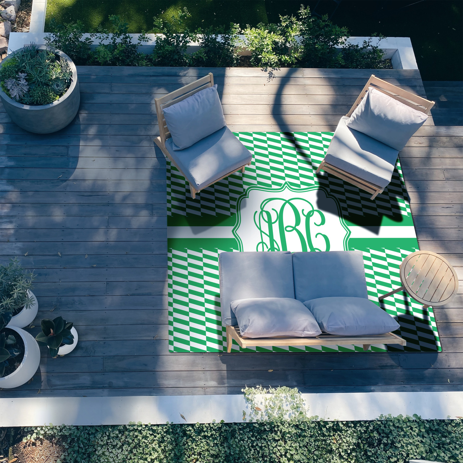 Patio rugs add color and warmth to your home's outdoor space, so create a custom patio rug to suit your personal style and match it to the colors of your outdoor décor. Have it personalized with a monogram, initial, name or a combination of these - the choice is yours.