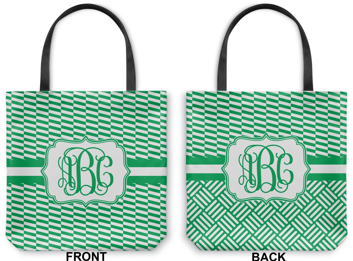 Our totes are made right here in the USA. Your design is printed on canvas fabric; the fabric is then cut and sewn on the sides and on the bottom to add an approximately 3.5 inch gusset. Black cotton handles are sewn in and reinforced. Your tote has a designs on both sides - the designs can be the same or different - the choice is yours. The inside of the tote has a black fused lining.