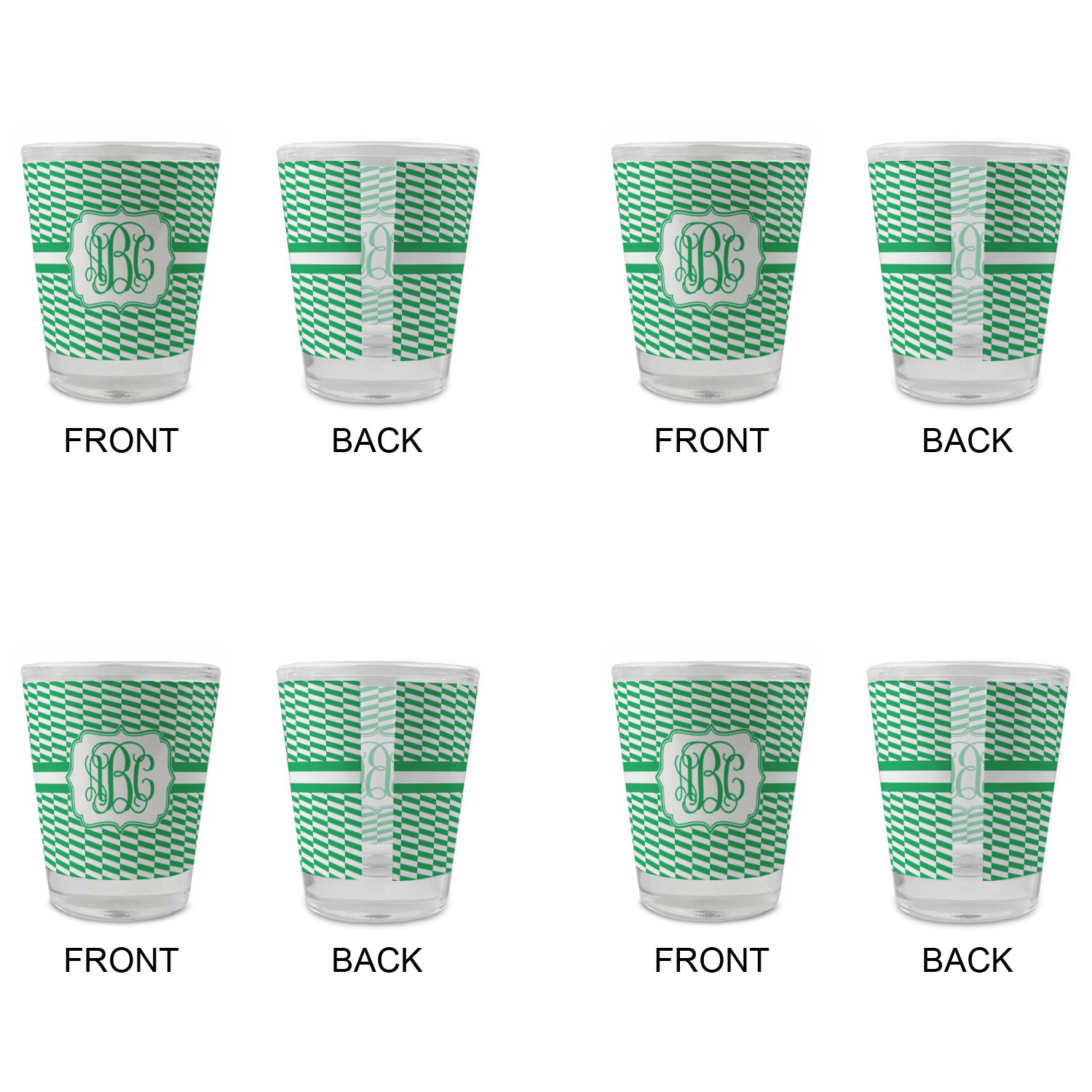 Made with frosted glass, these shot glasses are printed in full color with the design of your choice. They are a standard 1.5oz shot glass and are 2.4" tall. The print is wrapped around the shot glass in a full wrap and boldly displays your customization.