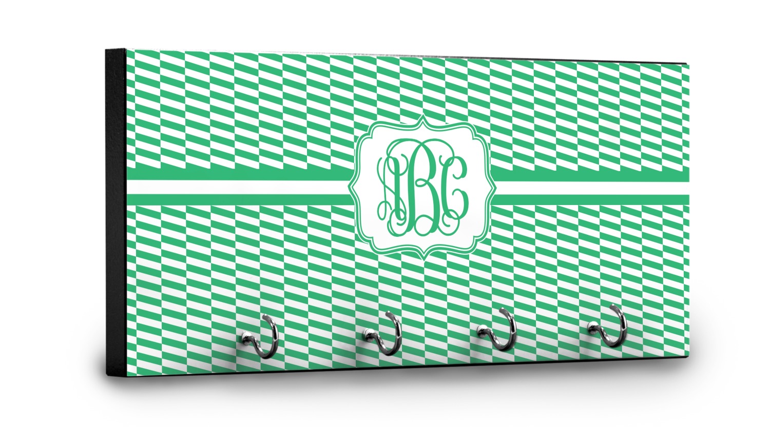 This 11" x 5" key hanger is made of sturdy wood and has four metal hooks lining the bottom. This is the perfect size for a family with several drivers. Not only can you hang keys on it though, but pet leashes and other small items. The board is black on the sides and back and is printed with the design of your choice on the front.