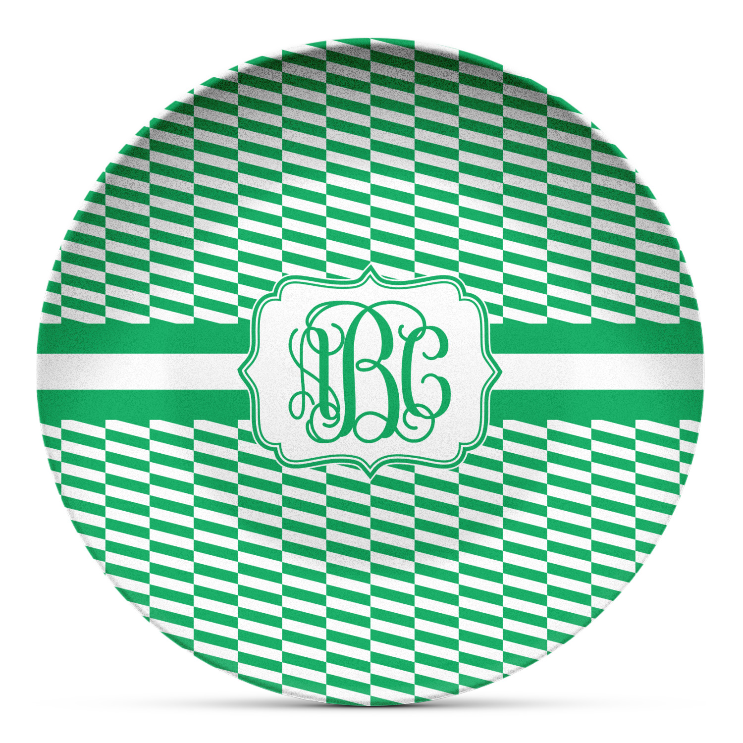 These plastic plates have the versatility, durability, and weight of melamine plates but are instead are made from a melamine-free composite, thermo-set, polymer plastic. These plates are made right here, in the USA, without the use of harmful chemicals, such as BPAs, formaldehyde, or DEHPs. Our elegant plastic plates can even withstand temperatures of up to 250 degrees Fahrenheit, for up to 60 minutes. The entire face of the plate exhibits your personalization in bright, vibrant color, and the plate's diameter measures at 10" long.