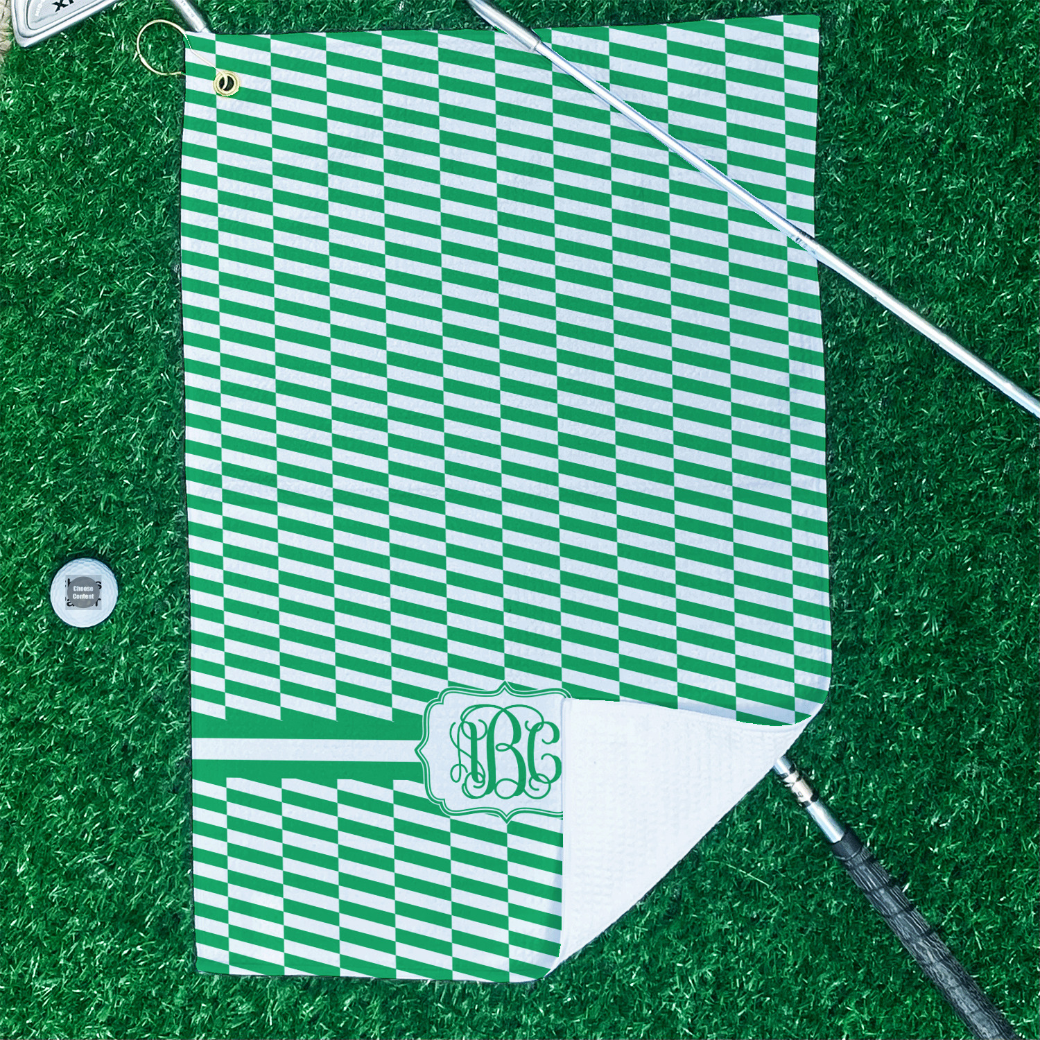 Trying to choose which golf towel is right for you? Our standard golf bag towel (one size - 13" x 18") is a terry loop style towel with a partial print that is great for normal, everyday use. If you are looking for a poly-cotton blend full print towel look at our standard full print golf towel - available in 2 sizes - small (11" x 18") and large (15" x 25"). If you prefer the look and feel of a soft microfiber towel our microfiber golf towels are a great option and allow you to polish your club and ball surfaces to a nice sheen. The microfiber golf towels are also available in 2 sizes - small (11" x 18") and large (15" x 25"). Lastly the waffle weave towel (available in a single size - 16" x 24") is a fantastic option to give you some texture on your towel to allow for more scrubbing and cleaning when playing in rougher, wetter environments. All of these options are able to be washed with bleach to get them clean and will retain their bright colors.