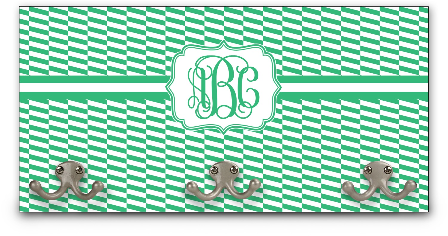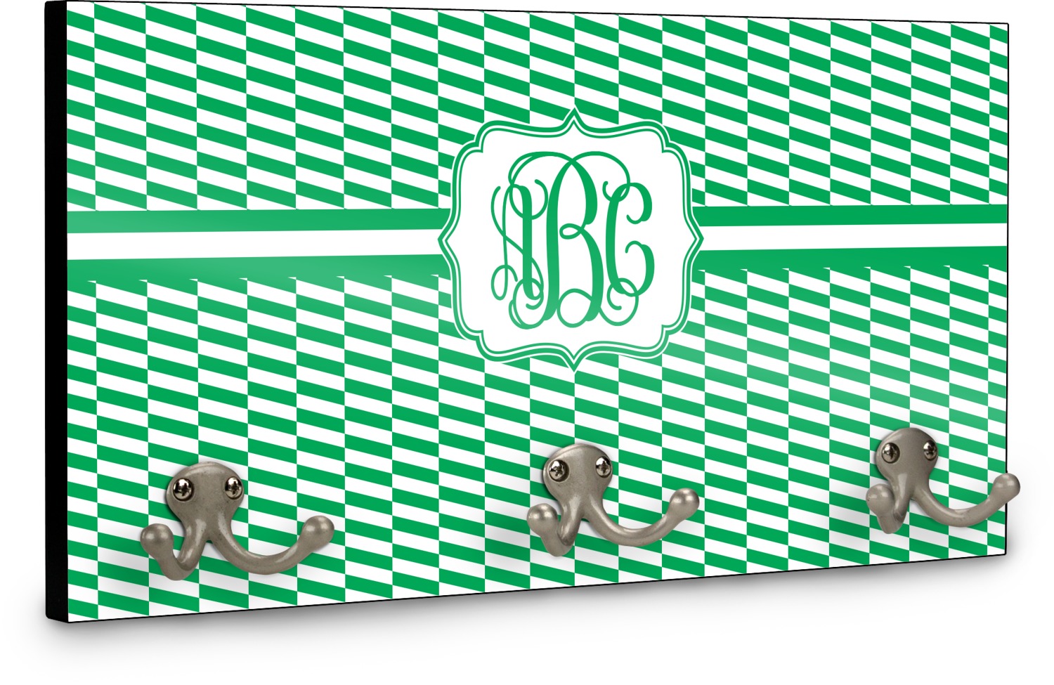 This coat rack is the perfect way to add some personality to your wall or entryway. The board is made of a strong maple that is approximately 16" x 8". The three 2-prong hooks are a sturdy metal that have three screws attaching them to the board. Your design is printed right onto the front of the board while the back and sides are a simple black.