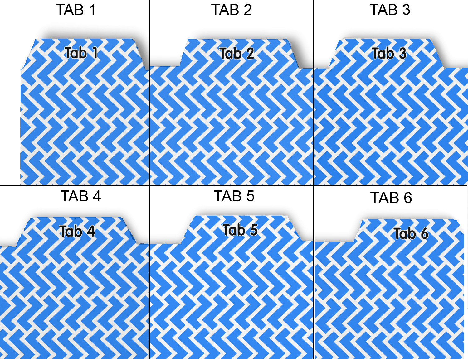 Whether you use binders at school or at work, we have designs to suit all of them. Available in 5 or 6 tab sets, you are sure to find a set to suit your needs. The back of each one is white and can be used to take notes, write vital information on, etc.