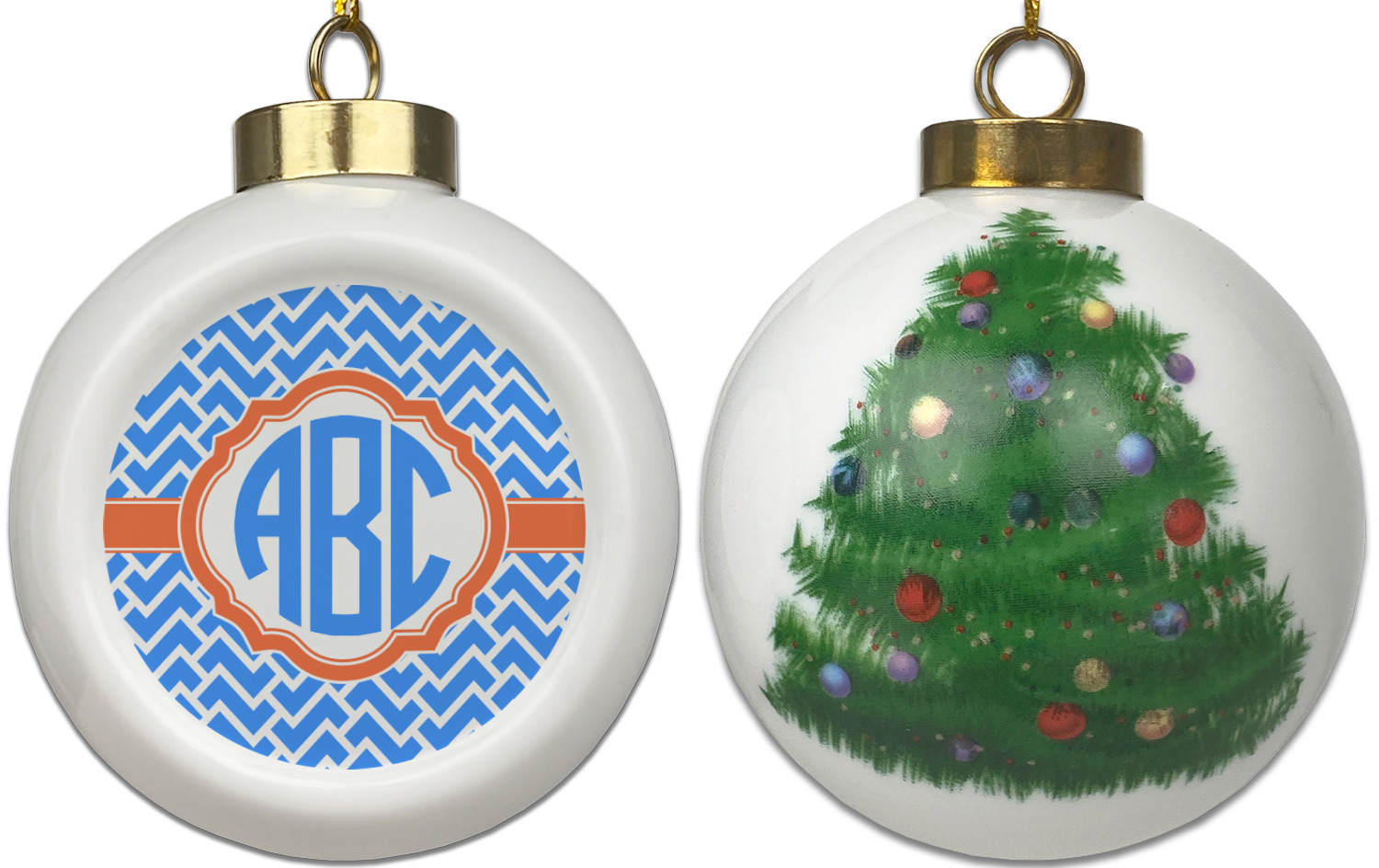Our Christmas ornaments are a unique ceramic ball shape with a twist as it has a flat face to display your custom design! Select from one of our two design types - Christmas Tree or Poinsettia Garland - to adorn the curved back of your personal design. Each ornament measures 3H x 2.5W x 2D accompanied with a gold string accent for finishing touches to hang on your beautiful Christmas tree!